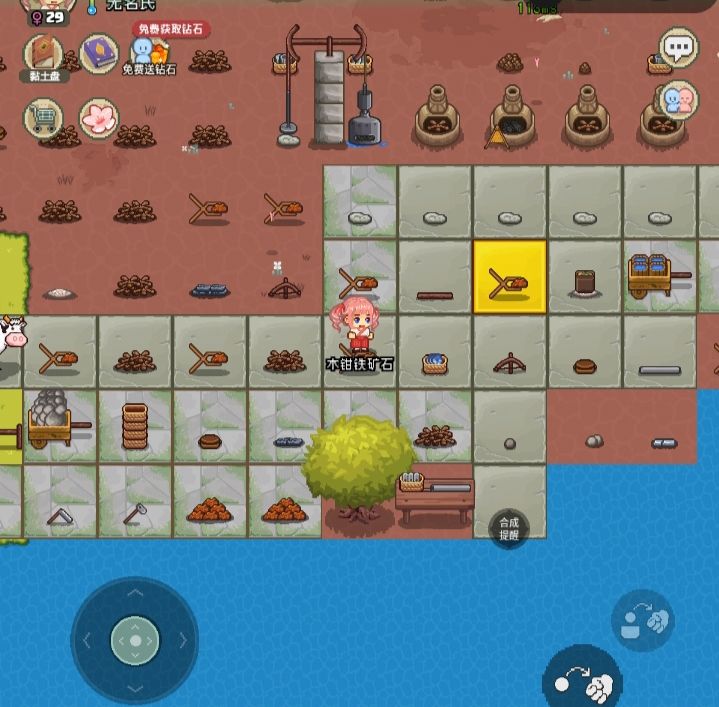 有了很多柴火之后自然就运了很多铁矿石回来打铁, 只是出乎意料的卡了虚空bug, 蓝色区域出不去。 #像素时代