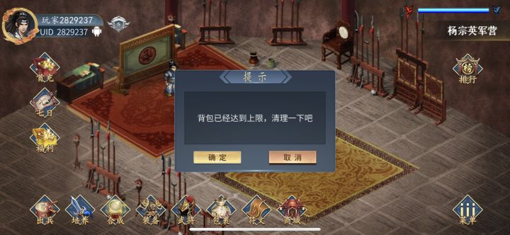 点击出战一直提示背板满了。东西全分解了还是提示这个。还一直提示内部错误