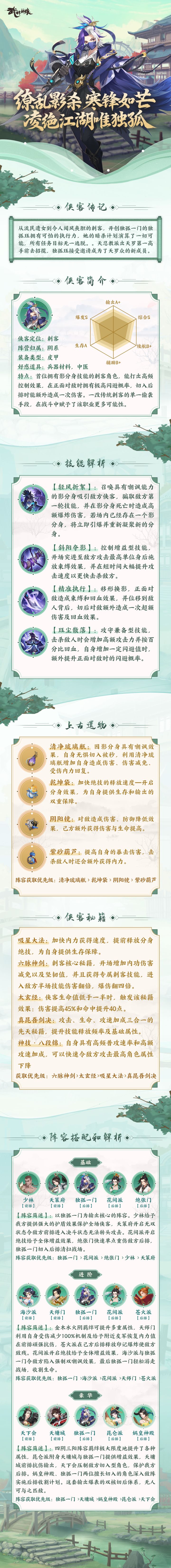 各位少侠们好呀!新侠客独孤一门即将全服登场,少侠们是不是已经等不及了?让小二带大家先看看她的立绘和技能吧~
