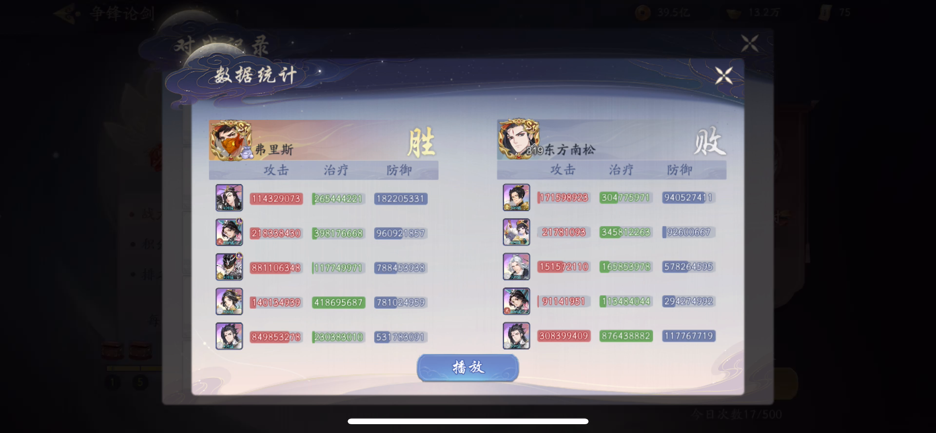 大家好,我是武林大神团弗里斯,来自天策55区,江湖编号:1211110337。 视频内容为:战力略低一点彩11六扇+彩7蜀山vs彩8武当+彩11蜀山,都有神武。 我要说的是:活着才有输出,实力不够,九阳来凑。推荐吸星北冥九阳易筋经拉满!