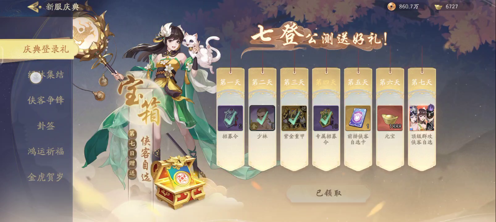 侠客集结活动开始。把我存的1万碎片开了,在把我存的两百抽开了。