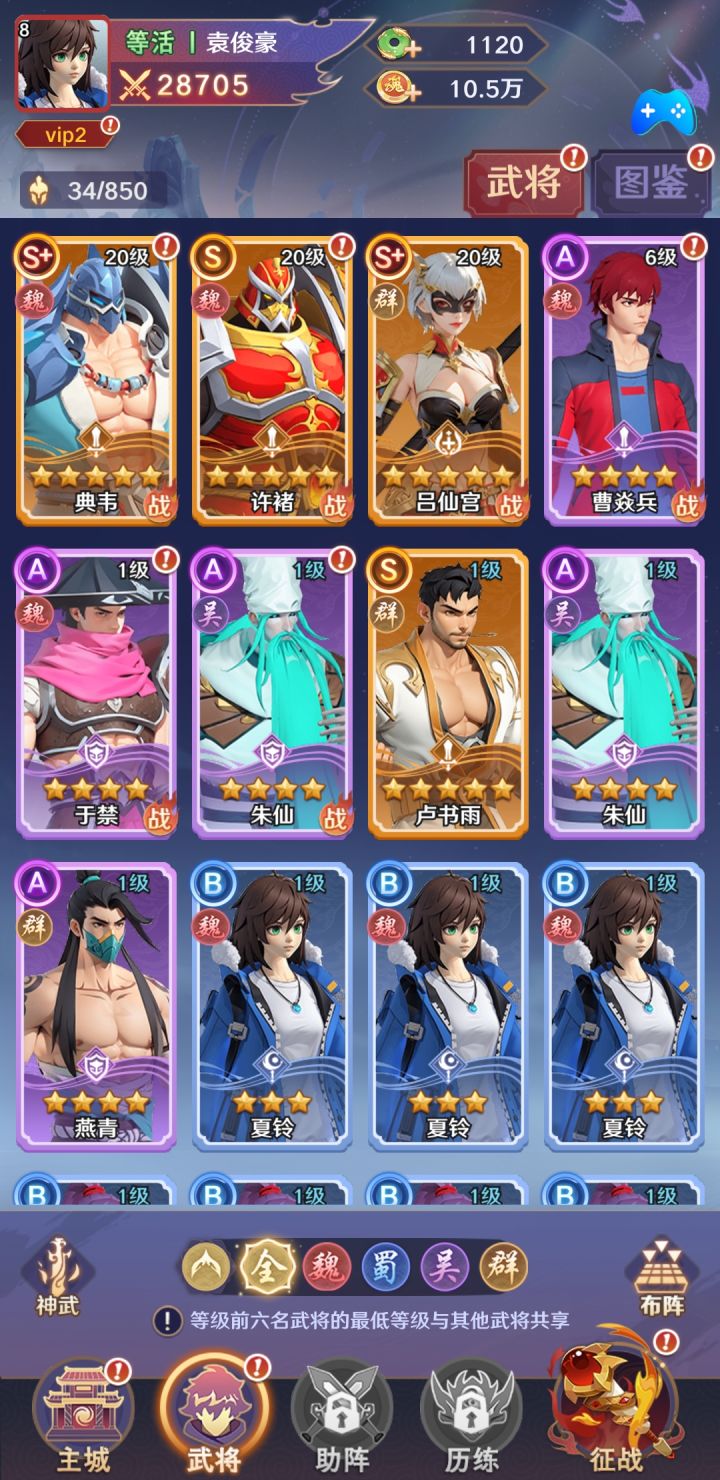 我是0氪玩家不知道我的帖子得罪了谁,反正各种顶不过无所谓,我们玩的是心情又不冲榜。不充钱的新区开服只用魂晶买黑市灵将招募券,其他几个券千万不要碰它,优先武将开sp,保证每天最少10连抽,不会错的前几天的活动和战力送的魂晶百分百够,今天10抽不出货适当单点几下不要大于5次那样很亏。第一天的20抽up池不出自己想要的就不要再这个区,那是无底洞。务必记住前7天魂晶除了买三次体力和灵将招募券上就不要