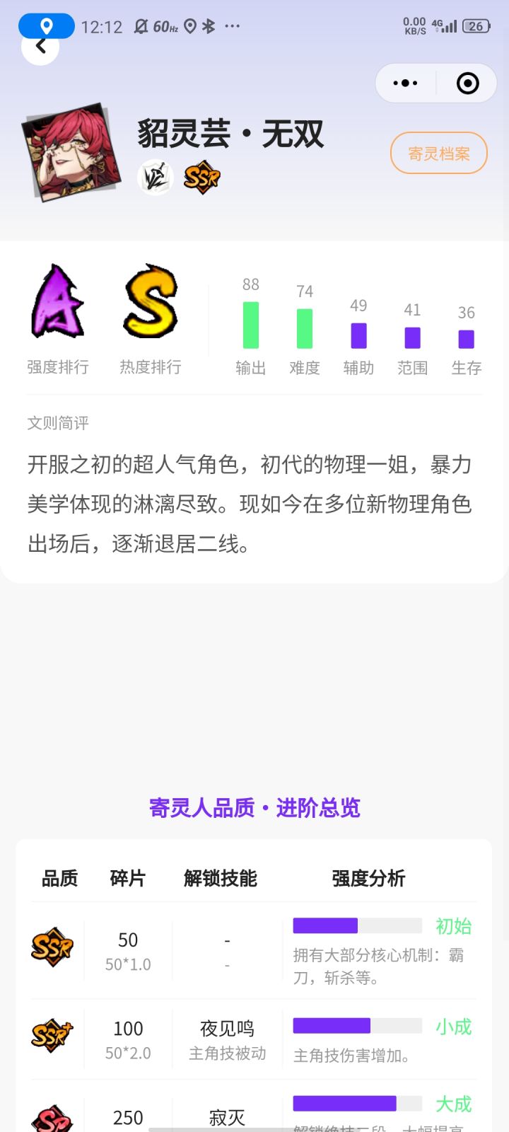 小程序使用心得:文则大佬开发的小程序真的是很强大,作为前端开发工程师同行,该小程序不仅功能齐全,里面更是有详细的阵容搭配、技能以及魂珠搭配等攻略,完全小白就能上手,通俗易懂。对四通未来工作的期盼:我觉得吧,四通一个人要负责多个平台的所有活动挺累的,我觉得可以在铁粉中选去部分人员可以跟四通一起分担这个工作量,最后祝四通bro前程似锦,祝镇魂街手游红红火火再创辉煌也希望官方能