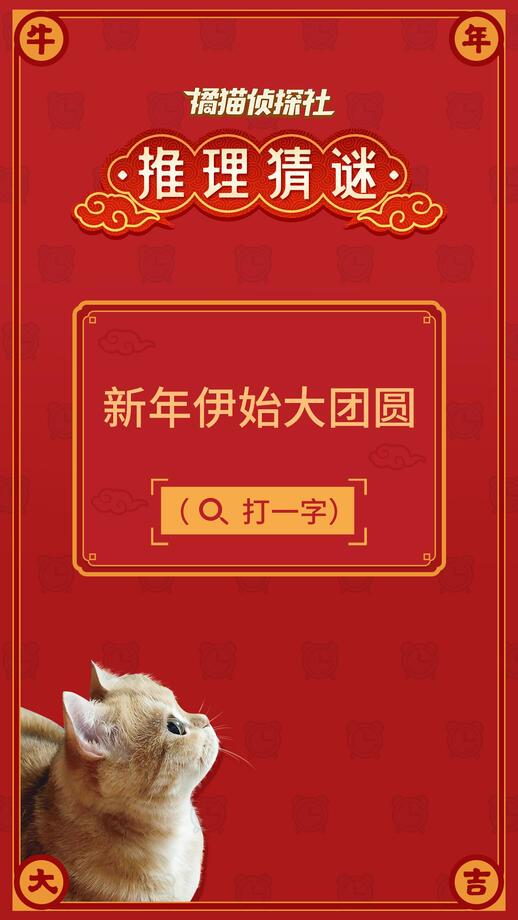 大年初一福利到!祝各位小探员牛年行大运,天天都开心今日推理谜语已送达,在评论留下你的正确答案,年后抽一位回答正确的小探员送充电宝1个~