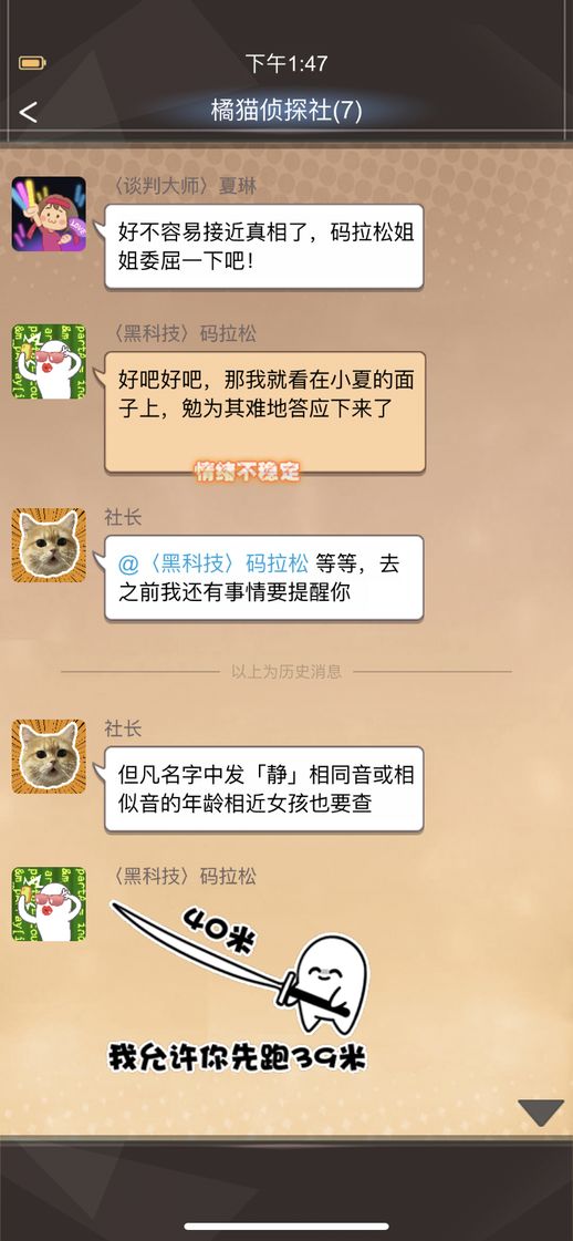 hello,小探员们周五好呀大家期待已久的《橘猫侦探社》手游现已正式全平台上线啦!撒花撒花~~~接下来就由小跟班我再带大家回顾一下这款游戏的多种玩法吧~推理故事搭配读心技能,进一步丰富解谜玩法《橘猫侦探社》是一款文字阅读类游戏。需要玩家扮演一名在网上工作的侦探,利用手机的特殊功能洞察别人内心,为来到侦探社求助的形形色色的人解决各种难题。游戏剧情通过一个虚构的聊天软件推进,所有的故事