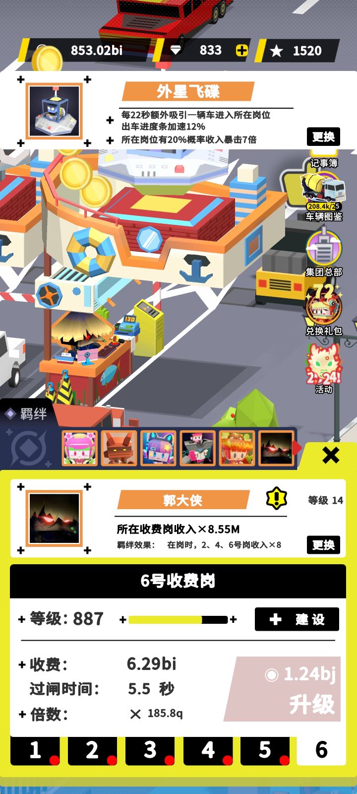 2,收费站升级价格比较不平滑,尤其第4,5张地图,收费站多一个设施,收入能够多一个数量级,大约500倍,但升级前的过程需要很久。