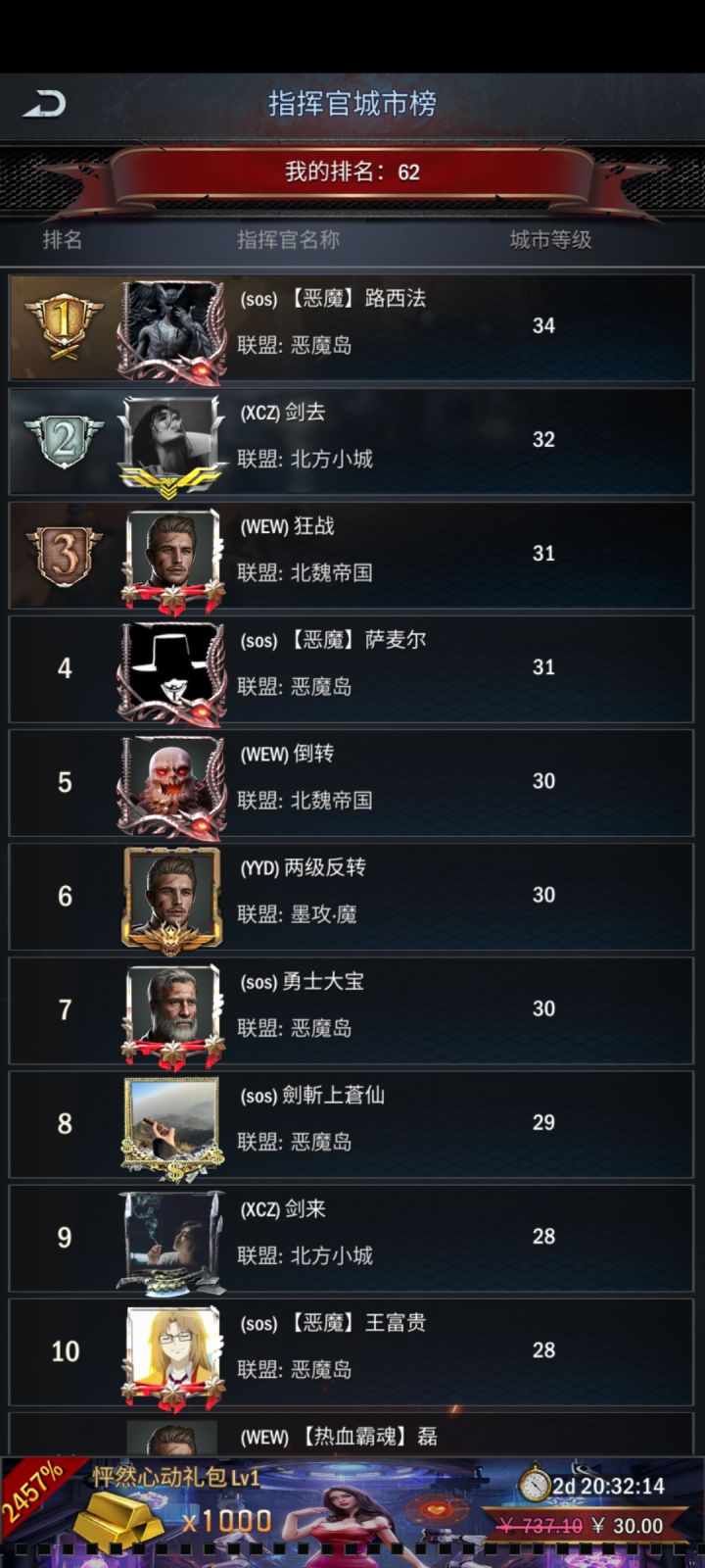 像最强指挥官活动(分三天,第一天建筑升级积分排名,第二天招募士兵积分排名,第三天采集积分排名)
