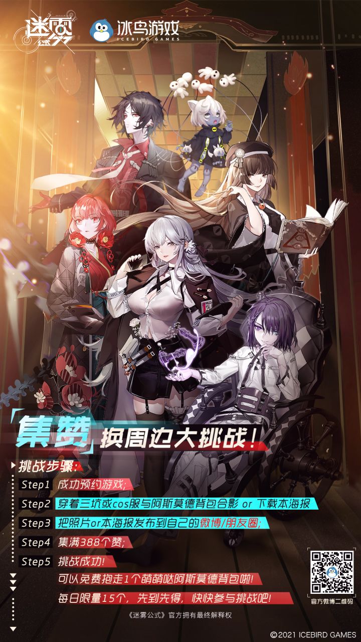铃彦姬明天终于能与大家在CP28见面啦,期待值max!官宣一下调查员们最馋的阿斯莫德背包~1.在Tap成功预约迷雾公式2.将本海报发布在自己的微博/票圈(据说穿上三坑或cos服有加成特效( ̄︶ ̄)ψ3.集满388个赞,即可直接抱走背包(每日限量15个哟!)Tips:天气预报说魔都明后两日有降雨,调查员记得带伞出门哟~