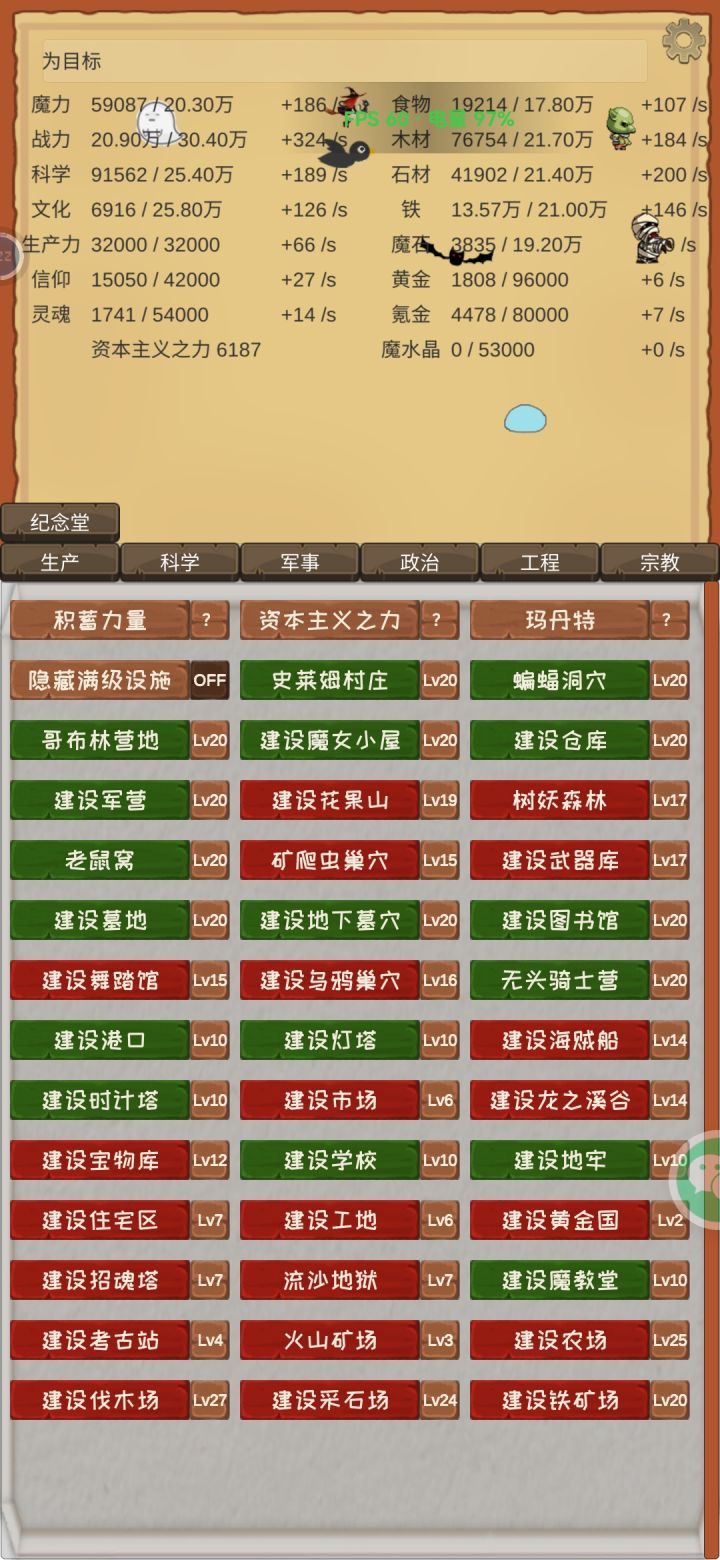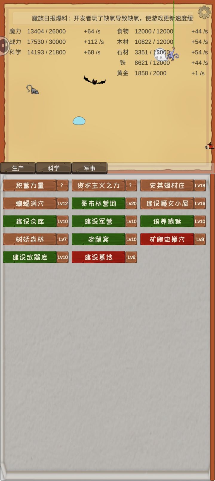 其实我喜欢它的原因主要是,它设有没种建筑的数量上限,可以慢慢解锁,但也会受制于资源上限等等,每阶段都有明显的上限。在其他增量游戏里面往往是没有的,导致每时每刻,投入升级哪种建筑都是一种权衡,而且这种权衡越来越多。而我想要的是开心点点看着数值上升,不停升级,升级新的东西,而不是永远投入一个无底洞之中。大概是这种意思。总之我还没有在其他游戏中见过这种设计,所以魔王归来依旧是我独一份的选择。