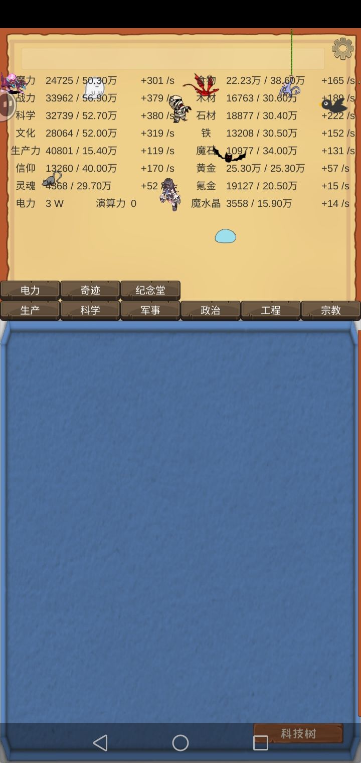 这个游戏非常的肝,你好不容易把资源到了20多万,才升一级就没了。还有那个积蓄力量,把我的手都快点废了,积蓄力量你可以用多手指点,相当于5倍。我才玩了6.5个小时,就达到下面这个图片,非常的好玩。