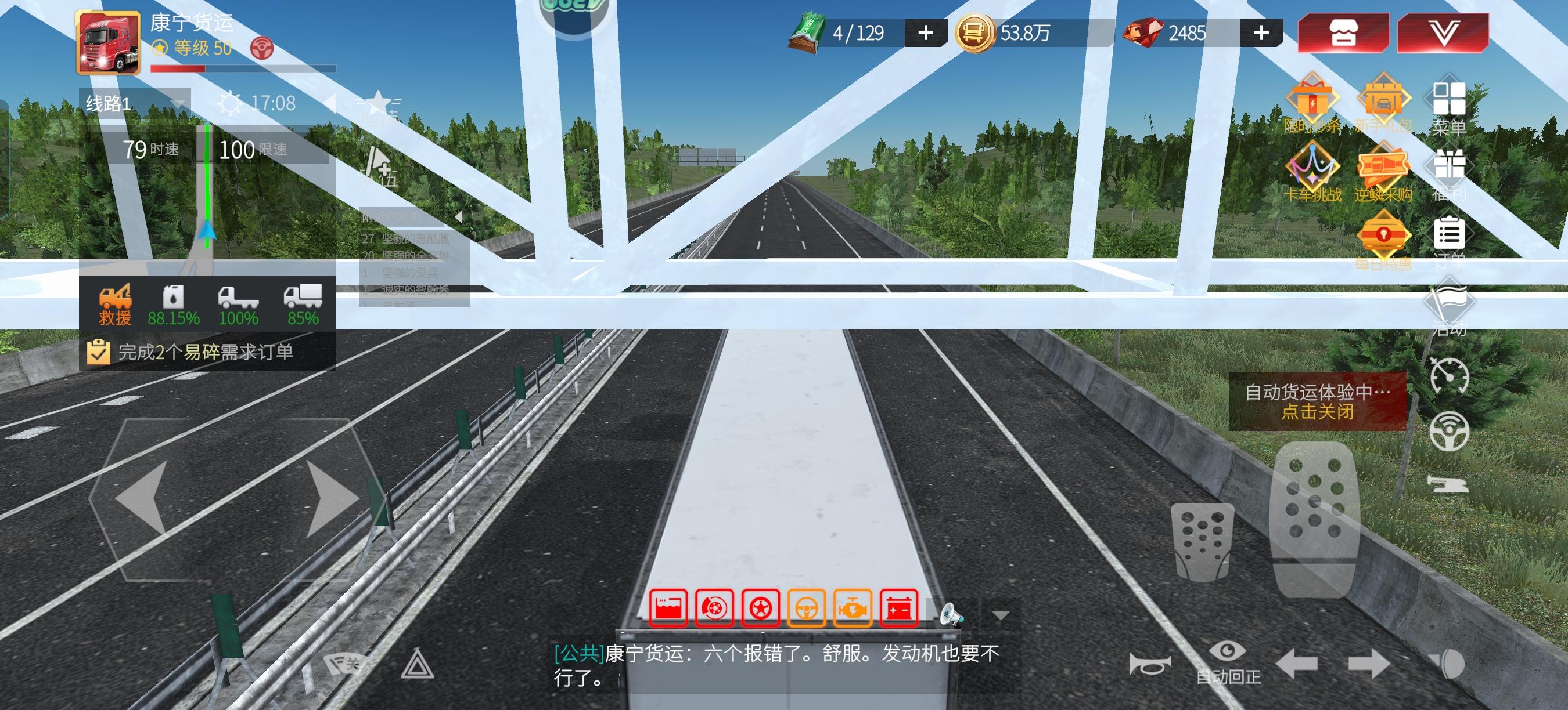 忘记保养就出车了。一趟长途下来差点报废。还好到站了。不亏。这回保养休想赚我任何金币和钻石。