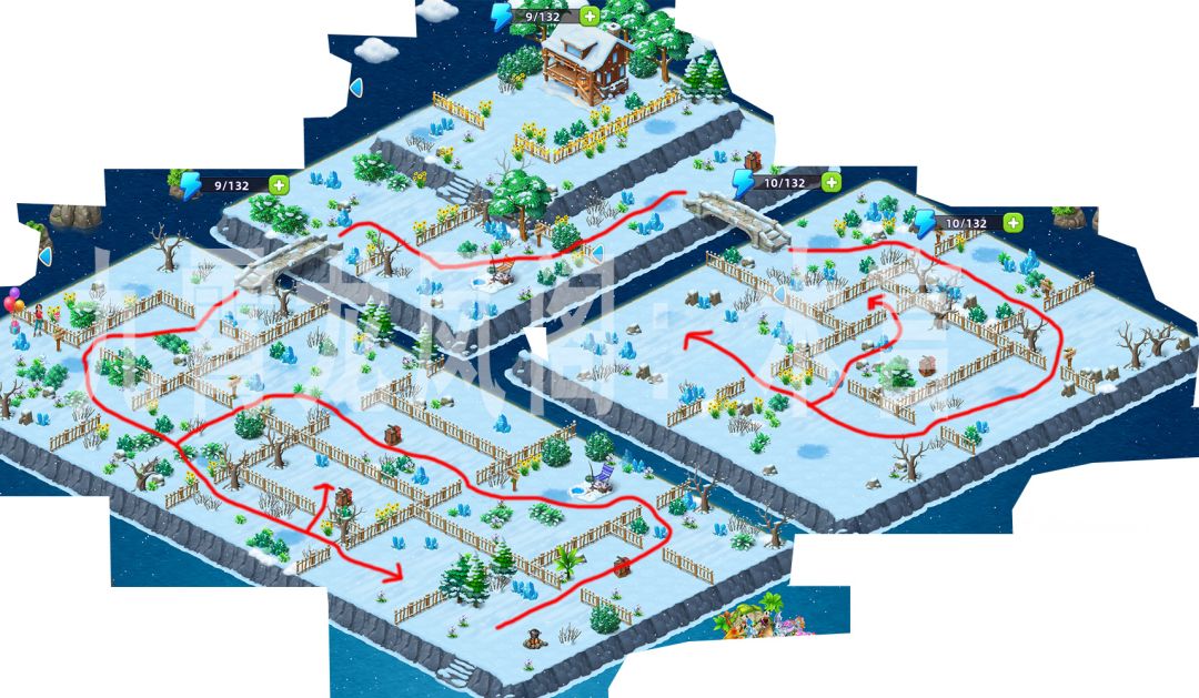 雪之岛路线图,从雪之岛开始做路线图吧,之前的做过去了。只提供路线图,其他的点击放大镜解决。