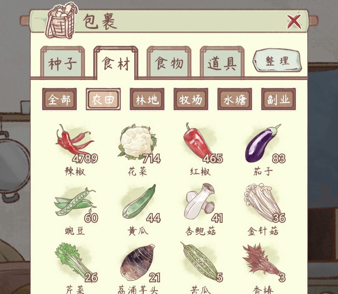 玩了几个月,纯个人攻略 主要: 麻辣火锅(辣椒+牛肉+豆瓣酱) 香辣小龙虾(辣椒+小龙虾+食盐) 椰奶(椰子+牛奶) 次要: 干锅花菜(花菜+五花肉+豆瓣酱) 清蒸狮子头(五花肉+虾) 木樨清露(干桂花+泉水) 玫瑰清露(玫瑰+黄酒) 农田:主辣椒(辣椒溢出后可刷花菜) 林地:主椰子(椰子溢出后可刷黄桃,葡萄) 牧场:主牛肉,春天刷牛奶(牛肉溢出后可刷五花肉) 水田:主小龙虾,春天刷泉水(小龙虾溢