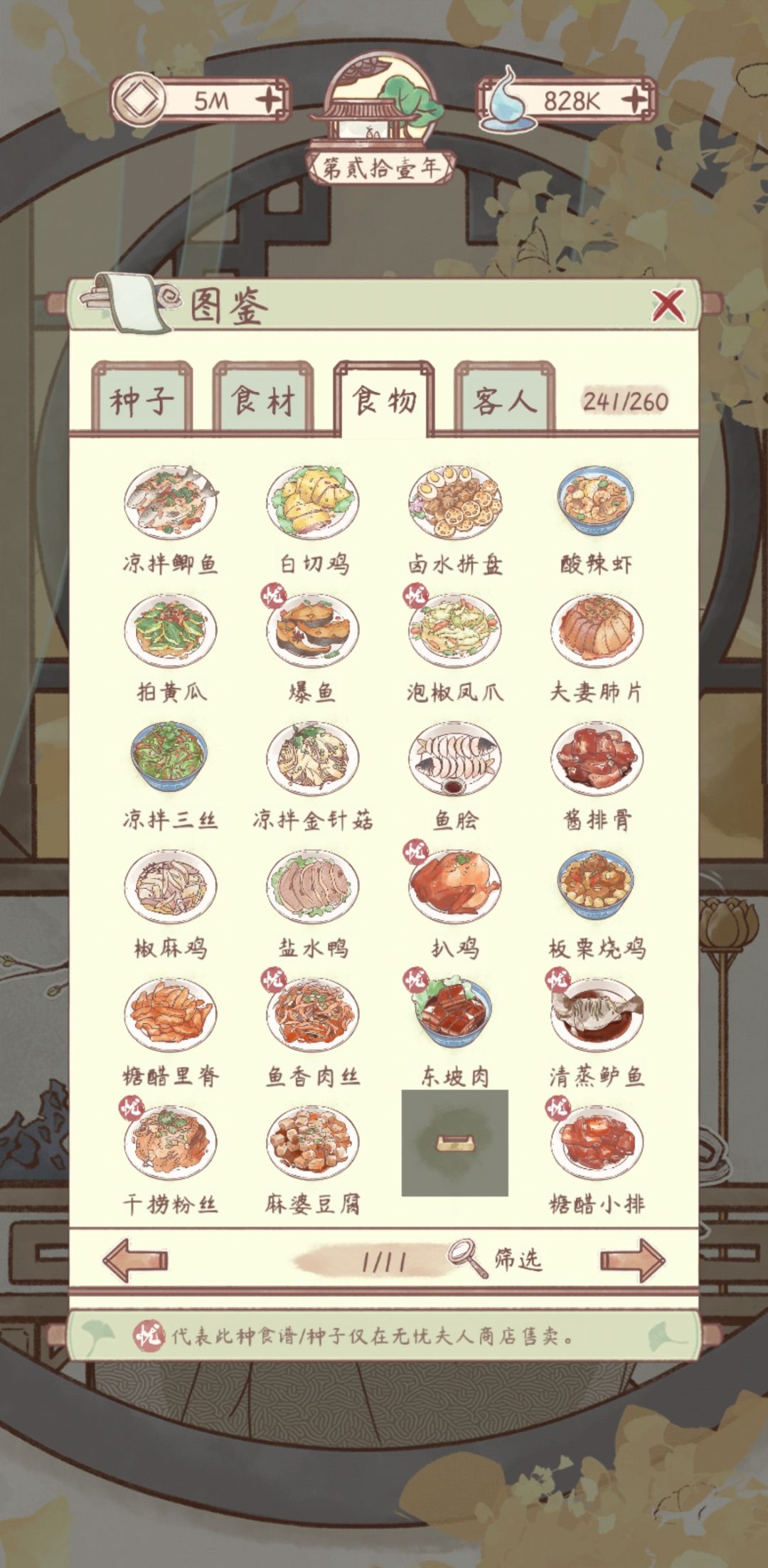 未获得菜谱—— ❶『蜜汁糯米藕』 ❷『泡椒鸡杂』伯奇客栈菜谱✅已get | ᴥ•́ )✧ ❸『五香耗儿鱼』婴宁客栈菜谱 ❹『桃夭』柳生剧情菜谱(官方说的😢) ❹『黄焖鸡米饭』 ❺『京华露酒』 ❻『青梅酒』 ❼『虾饺』 ❽『黄焖鸡米饭』 ❾『八宝糯米饭』 ❿『豉汁凤爪』 ❶❶『番茄牛腩』 ❶❷『腌笃鲜』 ❶❸『金银馒头』 ❶❹『鹅肝酱』 ❶❺『百果糕』 ❶❻『雪花糕』 ❶❼『杏酪』 剩下的我也不知道