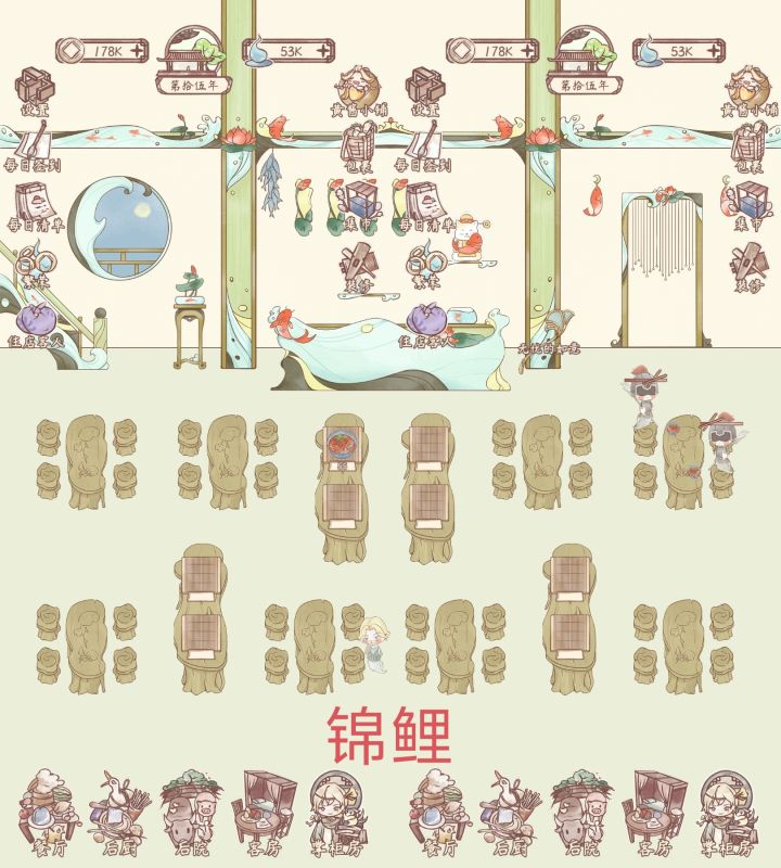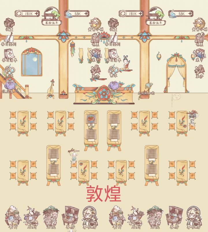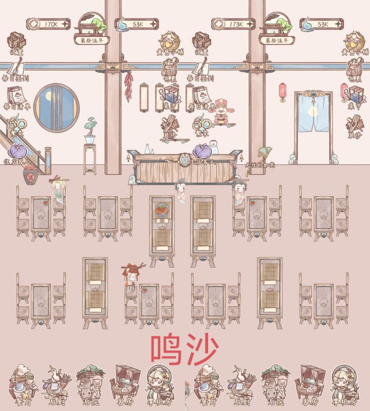 截止版本V2.1.6,没有大的更新图片上写的版本不会变,直接看开头写的截止版本就行。(问就是懒)目前版本也是开放了客房功能首先客房功能从第四年黑无常剧情后就开始购买营业了。客房开放购买时间、初始铜钱:人字二号房:第四年黑无常剧情后免费开放人字一号房:第六年150K铜钱购买地字二号房:第十四年350K铜钱购买地字一号房:第十九年500K铜钱购买天字二号房:第二十一年650K铜钱购