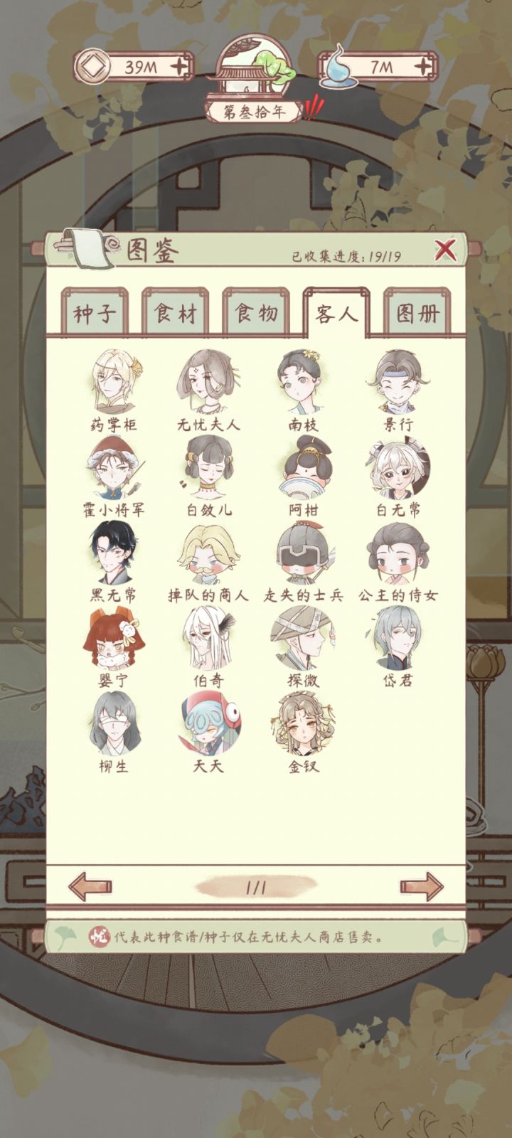 ✿客人❀药掌柜❀剧情:壹·奇怪的客栈掌柜:【第一年】贰·鸣沙客栈:前台装修叁·审判:购买所有种类家具各一件肆·死生轮回:【三十年】岱君客栈堂食50次伍·抉择:【三十一年】❥剧情成就食谱:无——❀无忧夫人❀剧情:壹·无忧夫人:【第二年】贰·三十年:触发前置剧情,无忧夫人商店购买1次叁·心愿未了:触发前置剧情,南瓜羹一级肆·公主:触发前置剧情,南瓜羹二级伍·无忧:触发前