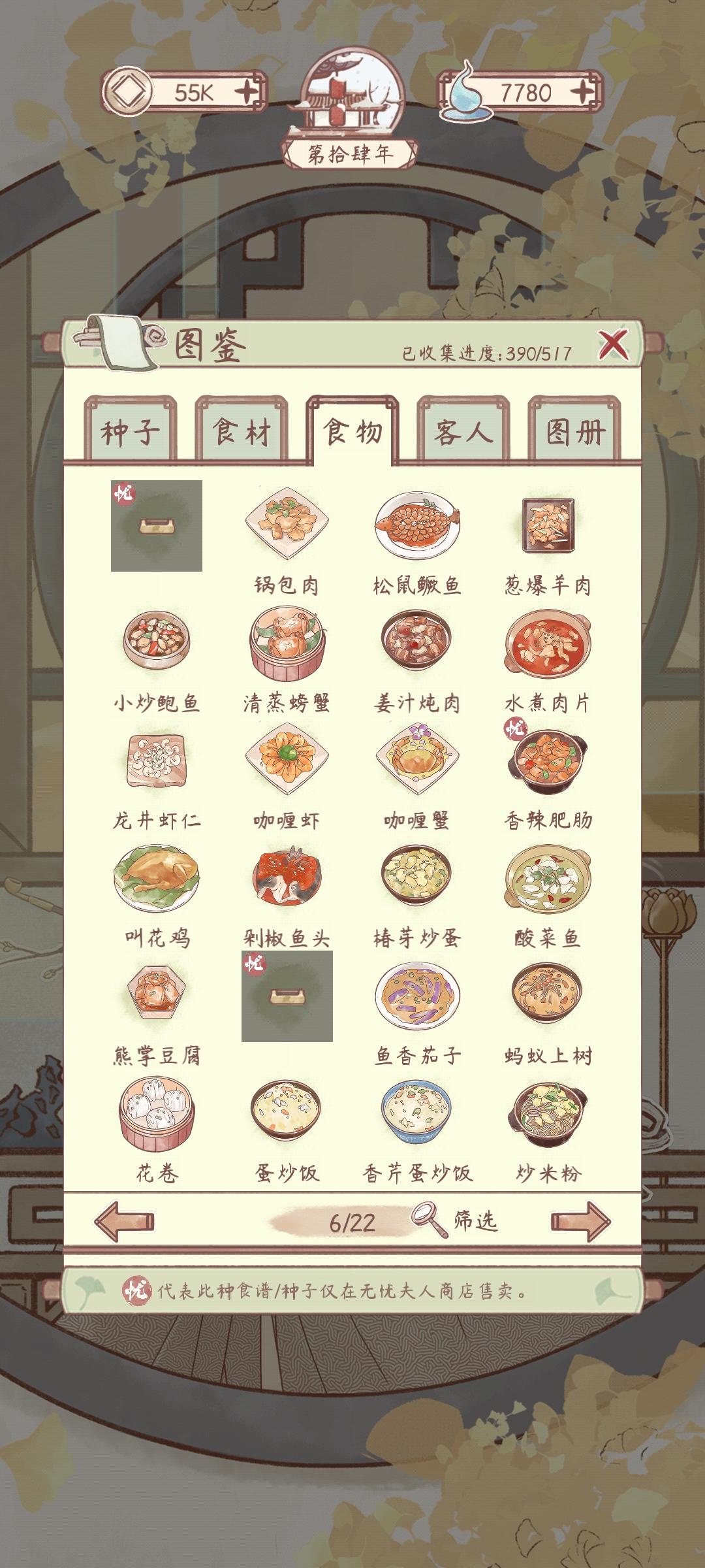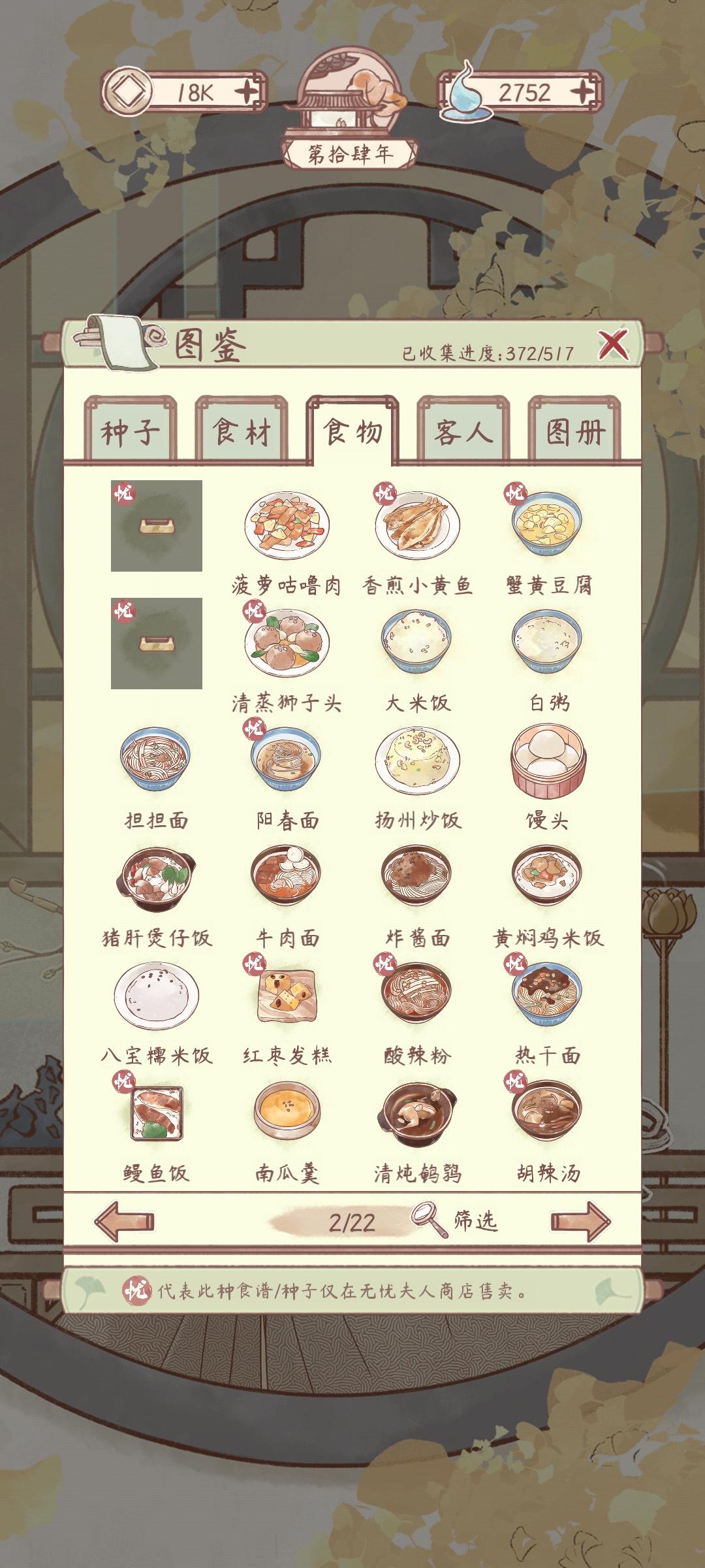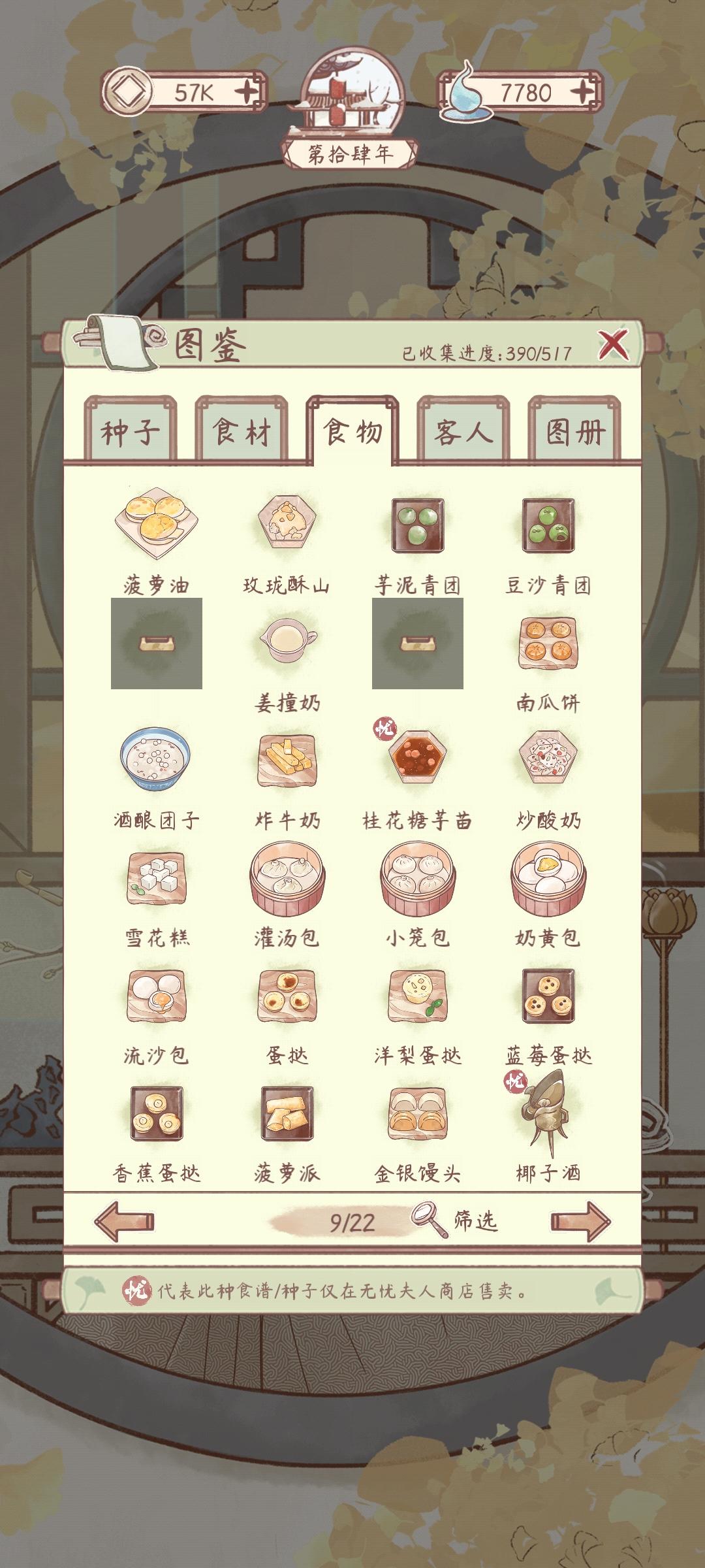 ✿客人❀药掌柜❀剧情:壹·奇怪的客栈掌柜:【第一年】贰·鸣沙客栈:前台装修叁·审判:购买所有种类家具各一件肆·死生轮回:【三十年】岱君客栈堂食50次伍·抉择:【三十一年】❥剧情成就食谱:无——❀无忧夫人❀剧情:壹·无忧夫人:【第二年】贰·三十年:触发前置剧情,无忧夫人商店购买1次叁·心愿未了:触发前置剧情,南瓜羹一级肆·公主:触发前置剧情,南瓜羹二级伍·无忧:触发前