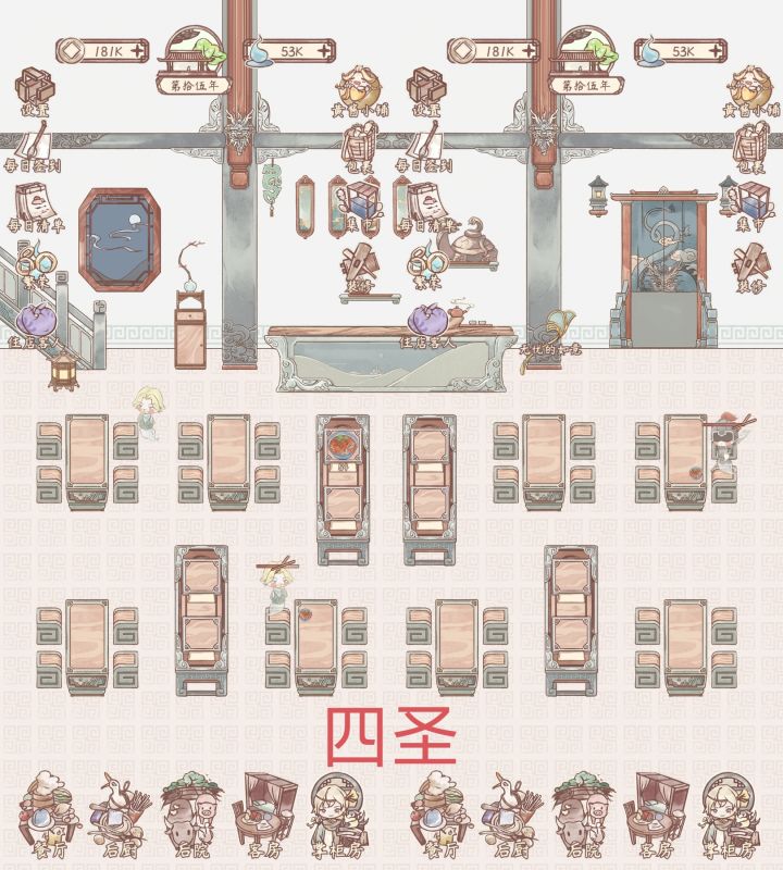 截止版本V2.1.6,没有大的更新图片上写的版本不会变,直接看开头写的截止版本就行。(问就是懒)目前版本也是开放了客房功能首先客房功能从第四年黑无常剧情后就开始购买营业了。客房开放购买时间、初始铜钱:人字二号房:第四年黑无常剧情后免费开放人字一号房:第六年150K铜钱购买地字二号房:第十四年350K铜钱购买地字一号房:第十九年500K铜钱购买天字二号房:第二十一年650K铜钱购