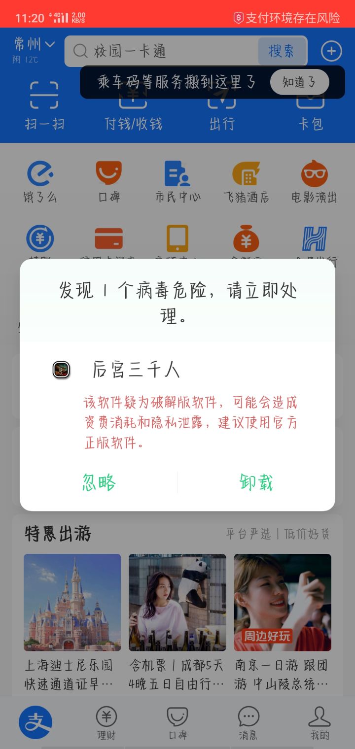我无视风险安装了 一打开支付宝就会跳出这个界面 你们也是吗