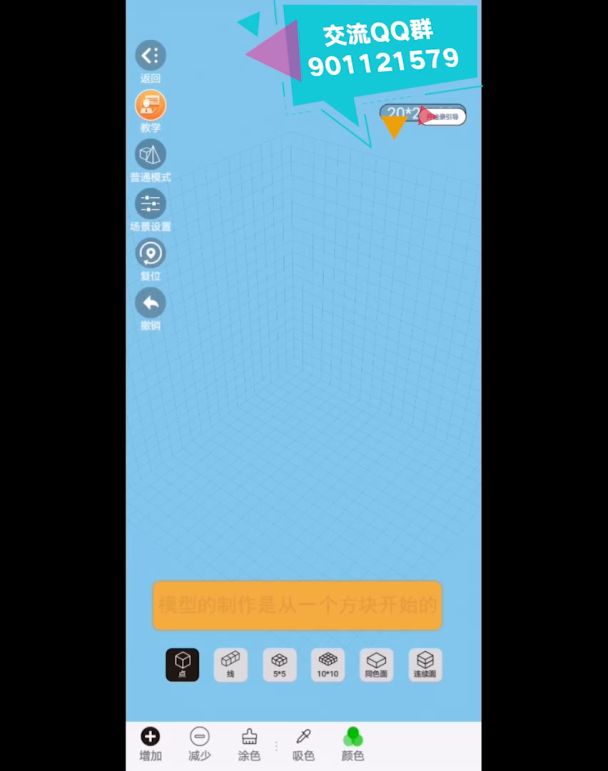01 一切都是从一个方块开始的 我们进入模型编辑器,系统默认选中“增加”和它上面的“点”两个图标。在这种情况下,我们可以用点击的方式,往框体里放一个方块。 02 堆方块就像堆积木那么简单 模型当然不能只有一个方块,我们可以继续点击,在这个方块的上面、旁边、前面……增加更多的方块。方块是不能凭空点击出现在空中的,必须依附于别的方块,或者框体。 03 快速堆方块技巧之一:拉线 选中“增加”和它上面的“
