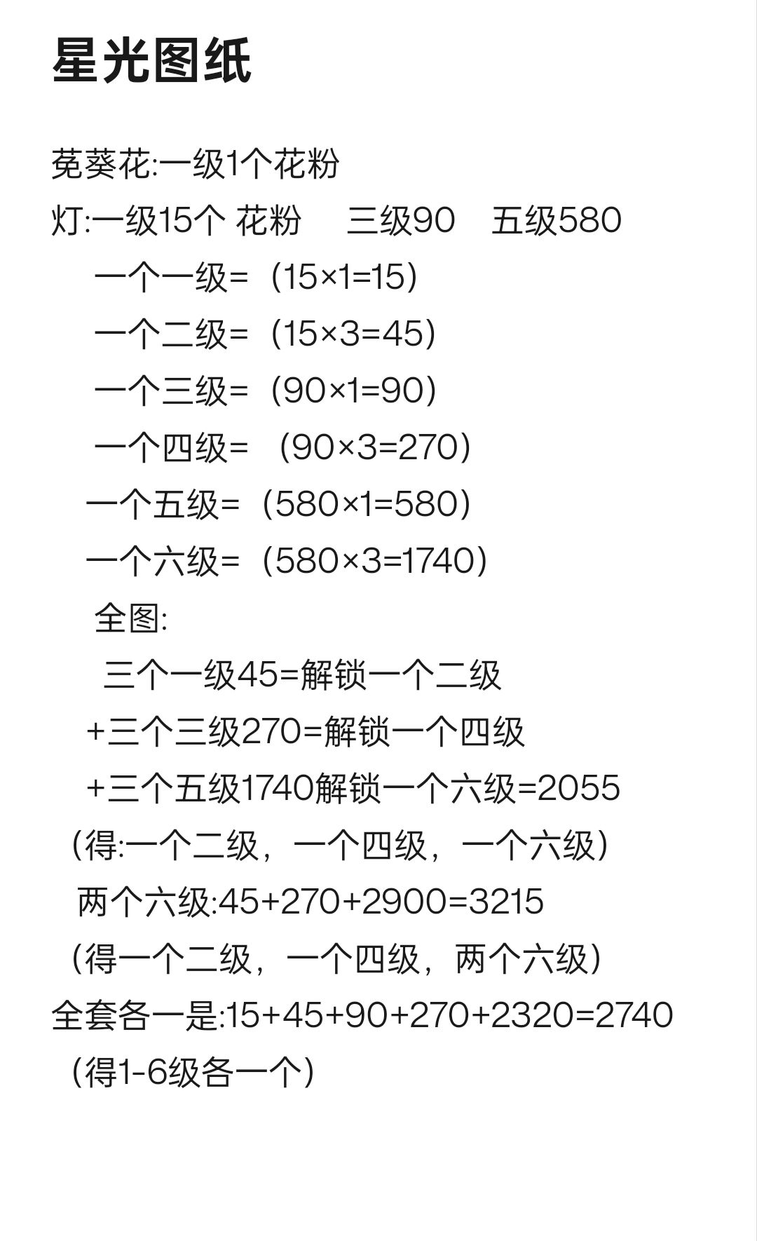 转发某书上大佬的攻略[表情_佛了][表情_佛了]很详细[表情_wink][表情_wink] 最优解get√[表情_比心][表情_比心] 单满 (13个1级→3级) (13个3级→5级) (3个5级→6级) 13*15+11*90+580=1765光粉 #小森灵