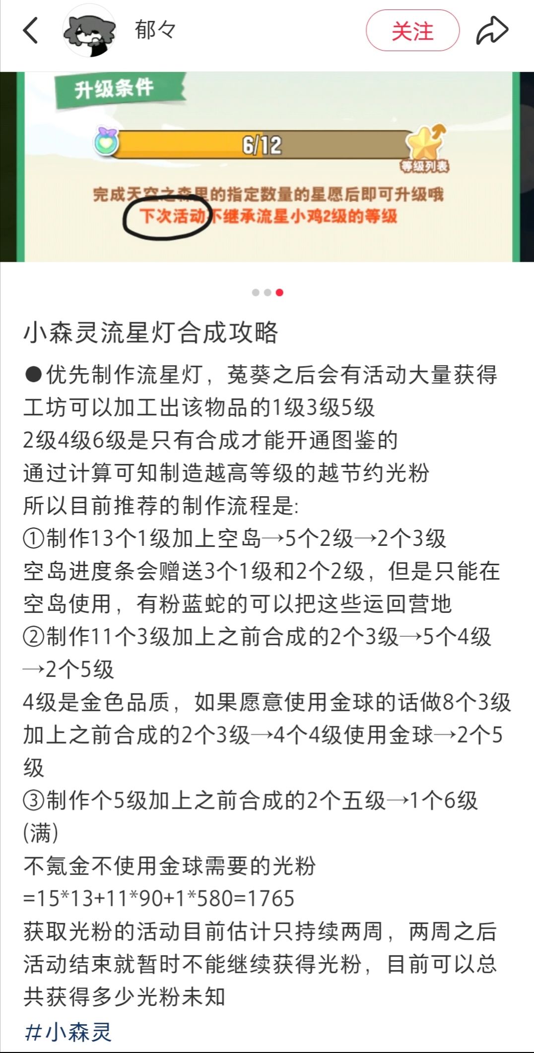 三种方式需要的流星光粉数量,可以按自己需求来做,还有三个获取灯的好地方(〃'▽'〃) 灯很好看,我打算做双满,再做全套留着,#小森灵
