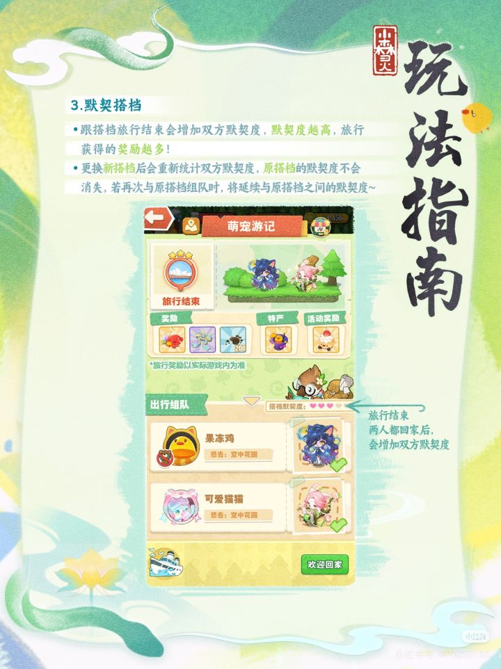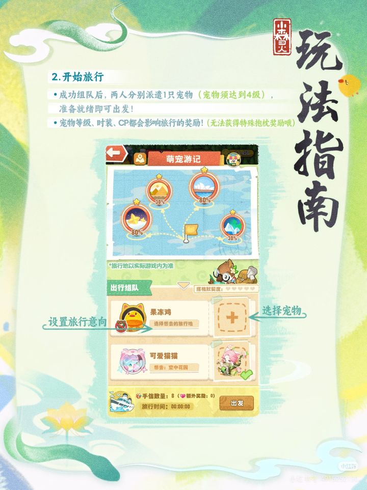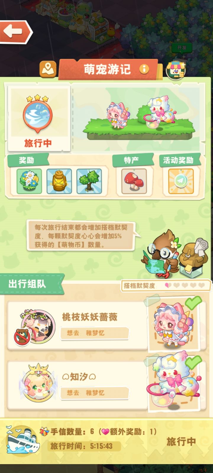 萌宠游记攻略以及旅行星地带回来的币是多少用时多长时间!!!一星旅行地300币,二星旅行地400币,三星旅行地500币,四星旅行地600币,五星旅行地800币,1星2星3小时,3星4星6小时,5星也是6小时,Ps:二星地最划算