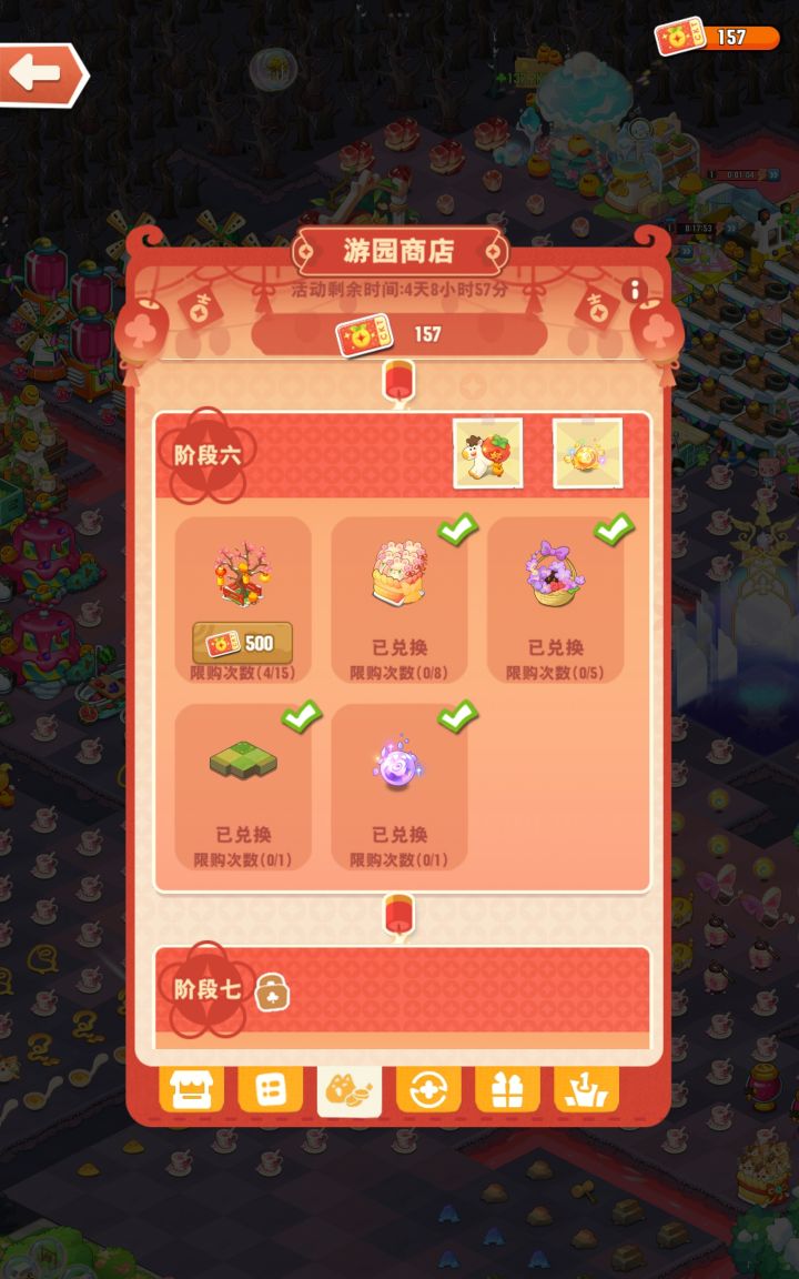 救命这个庙会做起任务来好难受啊(不过比不过那两周的雏菊和菖蒲),每天屯满地的东西五合,结果满地合一轮才刚过半,在我这基本刷到也没有多的合,因为前面刷时已经用掉了,明天打断先合顶级,后天刷金试试看。还有就是感觉这个进度要换完所有皮肤有点悬啊,听群里说下一阶段皮肤大概9600,但我还有前面的2000弄完才能下阶段也就是我还要9600+2000=11600才能换完我这还是氪金了的,虽然只是