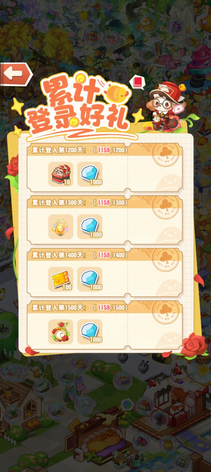 谁知道领完奖励就没有显示了,应该是超过1500天的,忘记了#小森灵 #小森灵造景