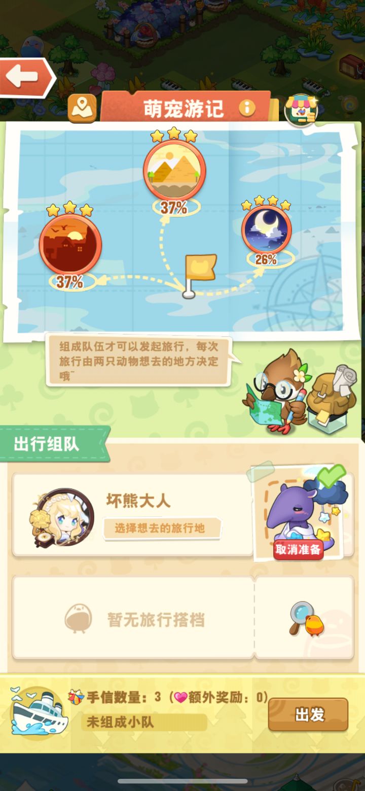 有没有大佬帮我发一下这三个陪跑的小动物的旅行地以及有没有特殊旅行地,感谢🙏#小森灵