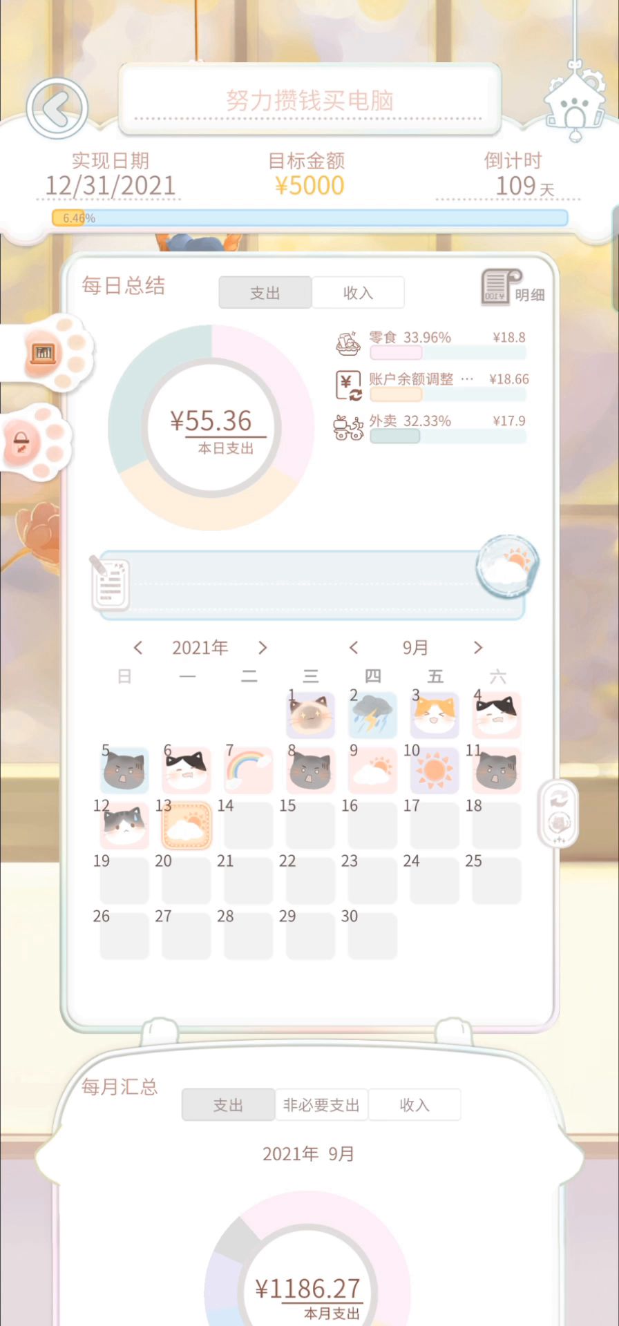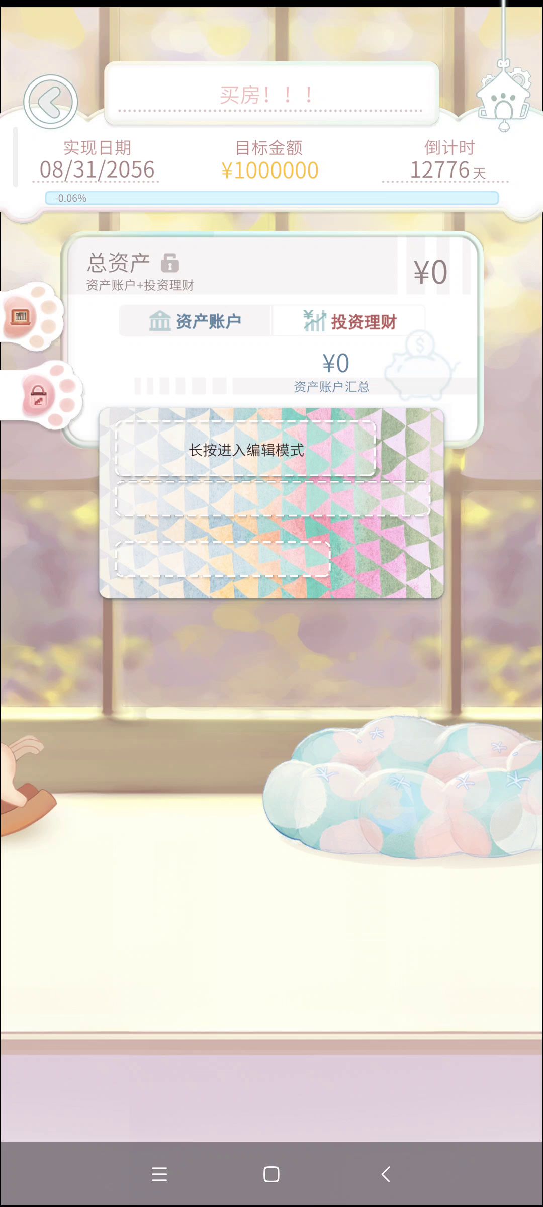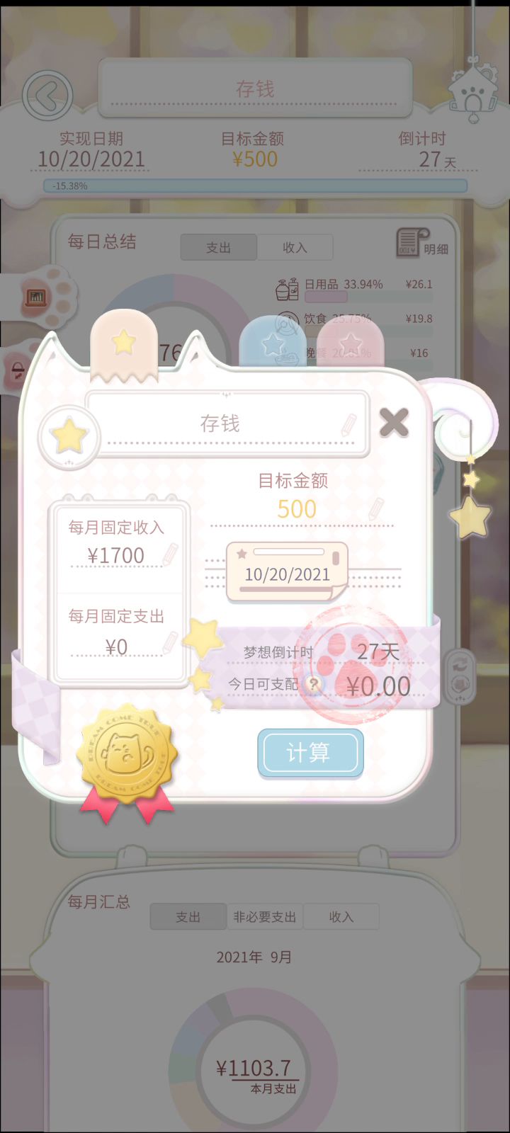 初始资金是0的话,每日可支配只能是0喔,要到发薪日才会有钱计算的,并不是不能设置新的梦想。具体每日可支配计算方式可以点击“每日可支配”旁边的?查看计算方法~