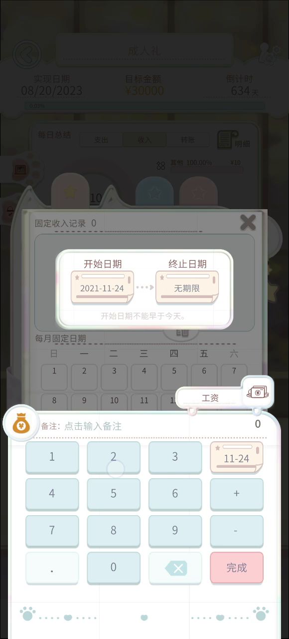 为什么不管我的固定收入还有我的目标日期和目标金额是多少,每日可支配都是跟着初始资金走啊