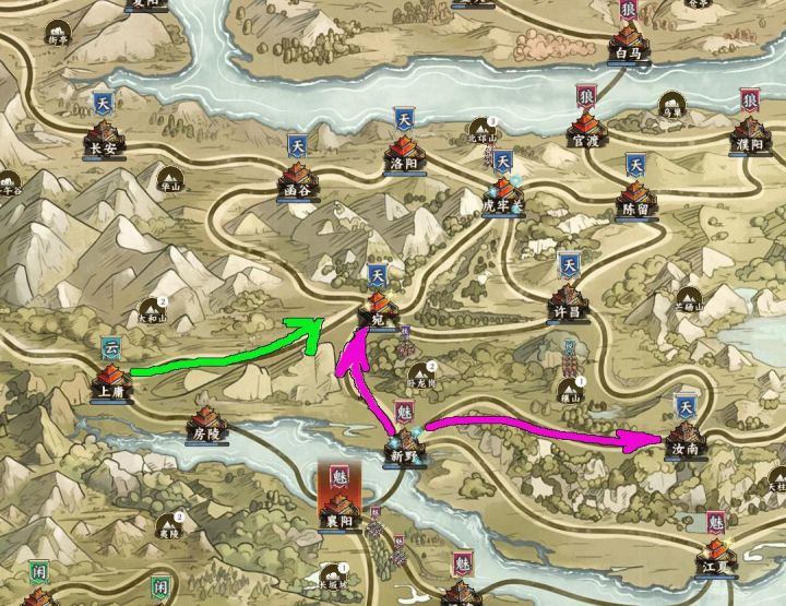 大家好,我是代过征战,今天给大家带来5月中旬的宛城大战回忆录。此地以曹操的故事而闻名,具体细节少儿不宜,不加详述,有兴趣者可查阅三国演义及各种野史。顺便为大家送上打油诗一首,曹魏爱人妻,孙吴控萝莉,蜀汉全是基!大家可以对照自己的国家对号入座。张飞:哼,当年我也抢过萝莉的。书归正题:地理位置介绍。宛城和庐江是本游戏中两座五路城,背靠虎牢、函谷、许昌。前临上庸、新野。当时宛城在天数有常“以下