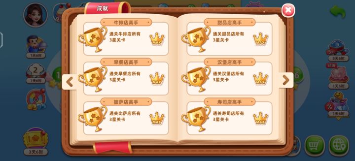 注⚠️:下面的图片是我自己对这个比较有要求,所以每个餐厅都是东西升级满和全三星通关。