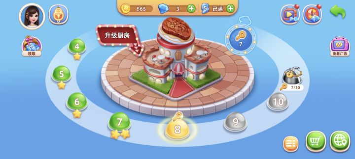 1.这个游戏目前有15个地图,一个地图有4家餐厅,餐厅有分别的关卡,每个关卡都是三小关和一把钥匙,每个地图不同,收集的钥匙也不同,需要把钥匙收集够了才可以开启下一个地图❗钥匙分别有:80、120、150、160(不是按地图钥匙顺序来排❗)