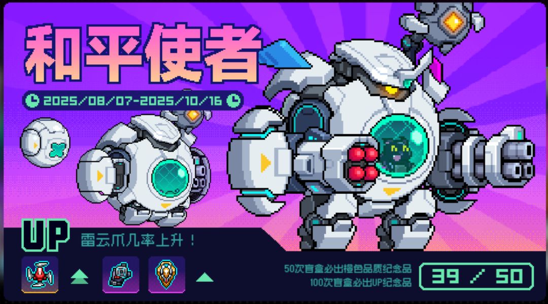 大家好我是霓虹工具人,今天给大家带来全新套装:和平使者的评测 包含: 1.套装机制解析 2.人物及宠物搭配 3.强度总结 废话不多说不多说废话,那我们现在开始 先来看它的套装效果 两件套效果是:激活援护单位:和平机甲,和平机甲将协同攻击,造成爆炸伤害 头顶上这个就是和平机甲 和平机甲可以自动积攒核心能量,消耗核心能量可以使和平机甲进入审判模式。 点击这里就可以进入审判模式了,审判模式是有时间限制的