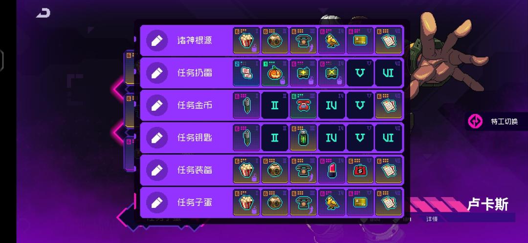 图一 适合刷日常 有神性更好 图二 适合刷诸神传说 核心尖牙5镀 躺着过 图三 适合刷诸神神话 单刷无压力 图四 适合刷诸神神话 诸神神话无伤 图五 适合时空 棒球套不要捡水果刀 棒球棒 图六 适合霓虹深渊