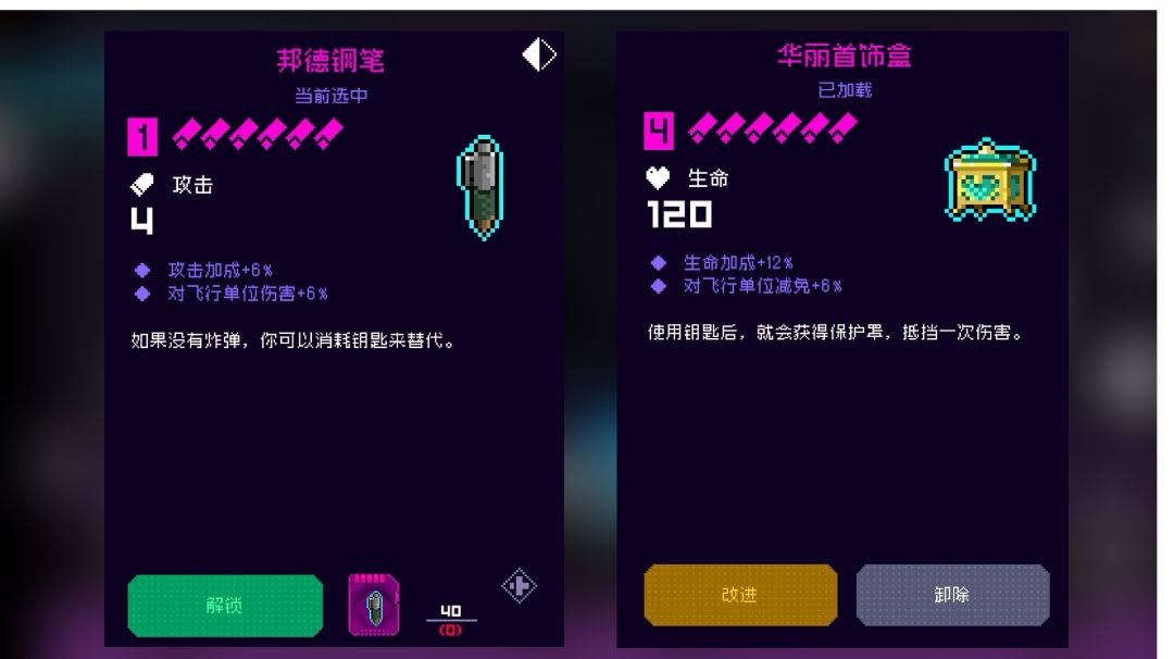 相信大家看到封面图也对这个套装有一个略微的了解了,我向大家分享一个非常实用的纪念品套装:钢笔首饰套。 本套装分为两个部分,必备道具和分支道具,必备道具必须拥有,非必备道具任选其一(也可以不带) 必备道具: 位置I:邦德钢笔 本套装的实现根本之一:可以将钥匙转化为炸弹抛出 位置II:华丽首饰盒 本套装实现的根本之一:在使用钥匙后,会生成一个能抵挡任意一次伤害且持续时间无限的保护罩(能带到下一层) 非