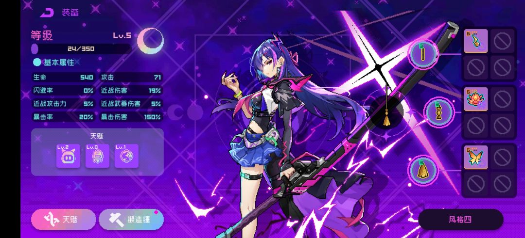 宠物:有啥用啥 初始3件套: 合锌装备*2+其他套装核心橙*1 想要凑套装就局内商店换。 紫夜优势: 纯数值的近战美学!