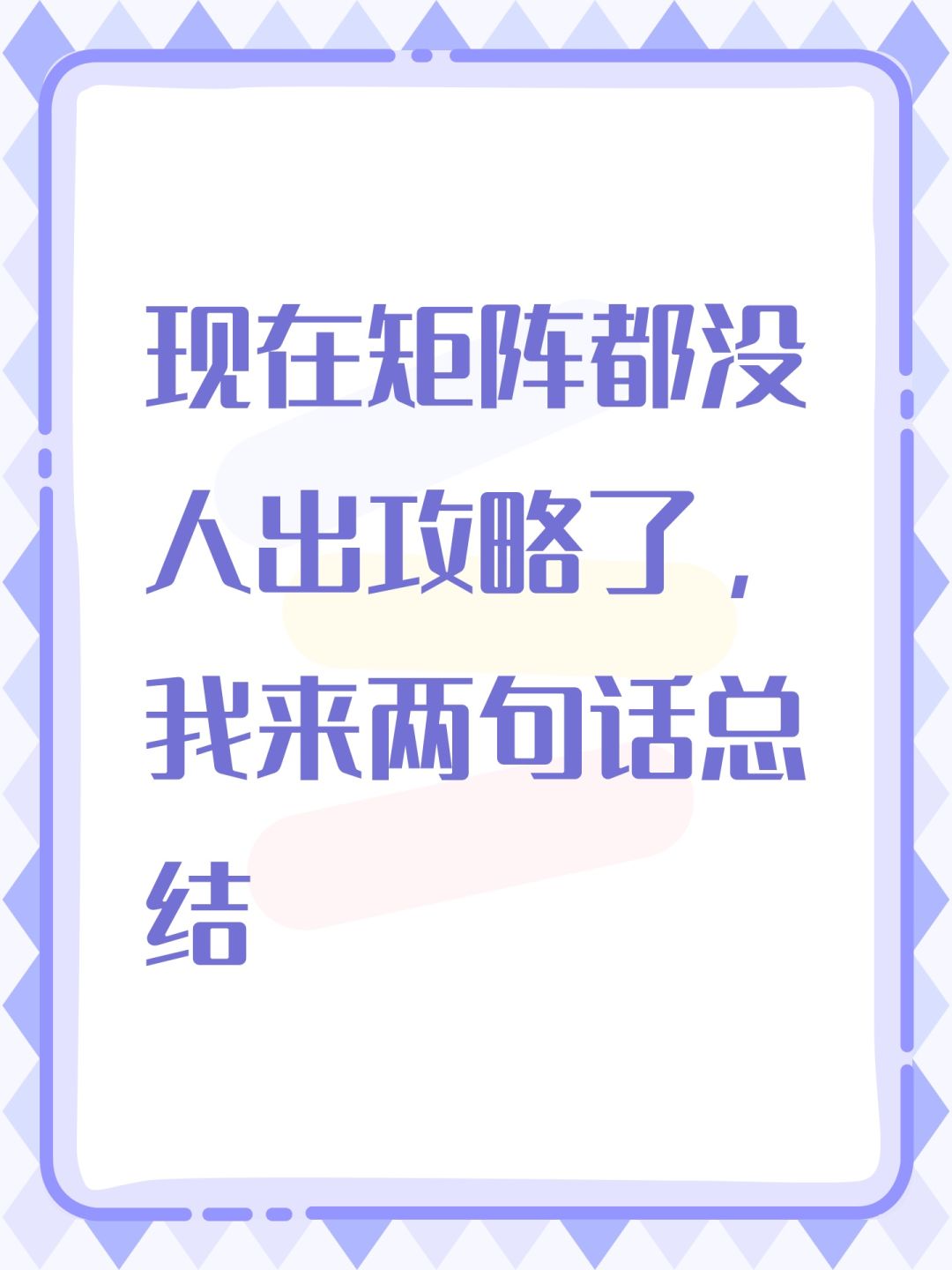 现在矩阵都没人出攻略了,我来两句话总结