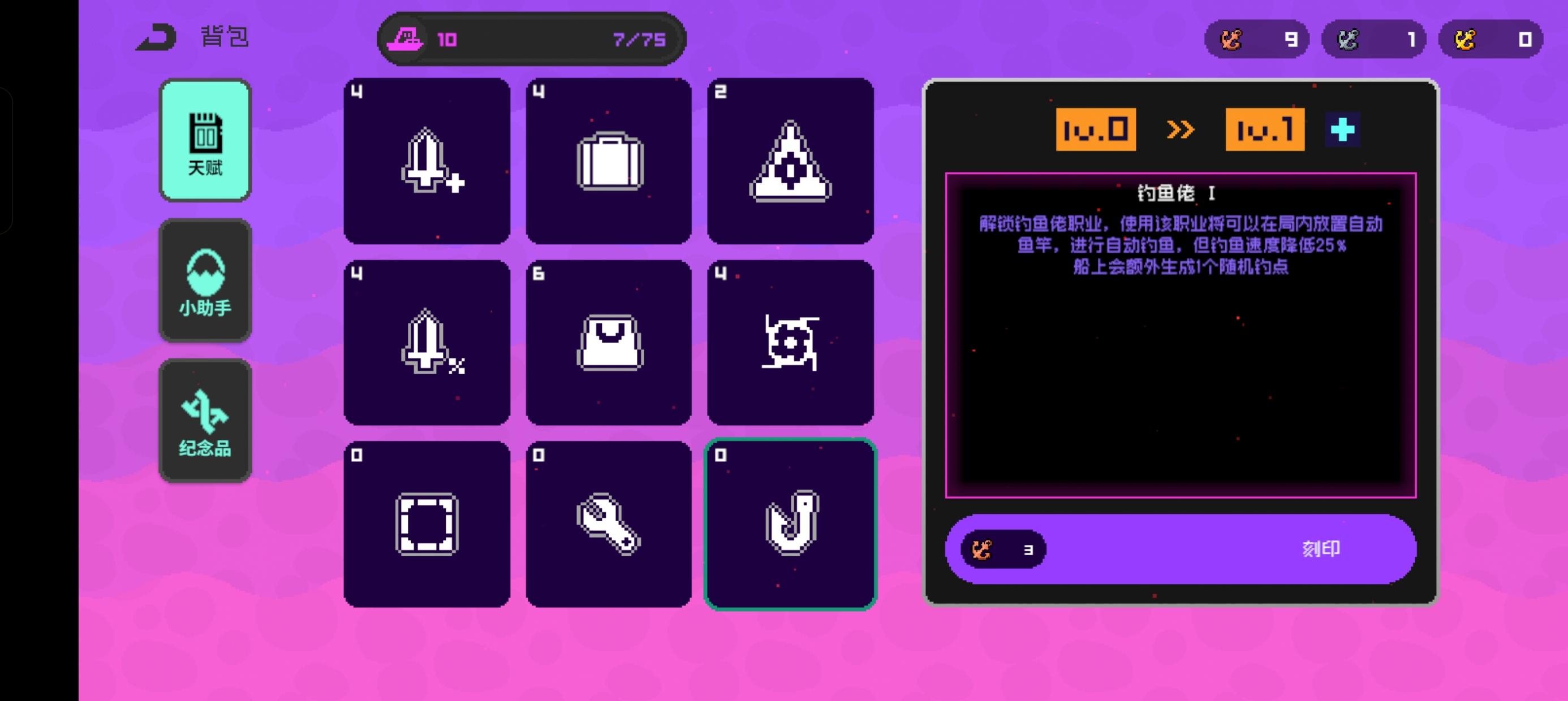 把天赋升到10级开放钓鱼佬技能,船升到12级额外增加钓鱼位,想掉大鱼就图内买鱼竿、鱼钩、鱼饵、线轮组,如果手残还有炸鱼箱[表情_斜眼笑]