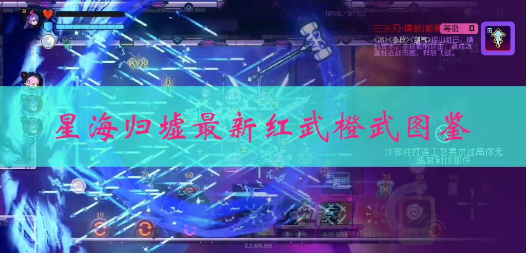 新版本更新后可以造红武的前端和橙武的核心末端了(黑铁棒和无光大剑造不了),这里给大家展示一下各个新武器的具体数值和效果供大家参考和出装选择。 红武 1.三叉戟擒蛟 先说隐藏款红武,三叉戟擒蛟,是由三叉戟的前端核心末端组成。零帧起手,可以穿墙的剑气,攻速极高,剑气数量也很多。 效果展示—— 2.苍天锤 当前版本答案——紫夜抡大锤!超大的攻击范围,并有还不错的倍率。拿上大锤清怪效率直接拉满!并且大锤还