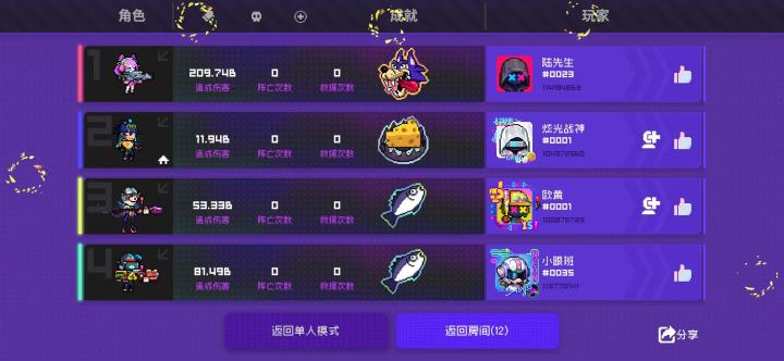 其余三个人满图跑找怪打,最后打完伤害结算出乎意料