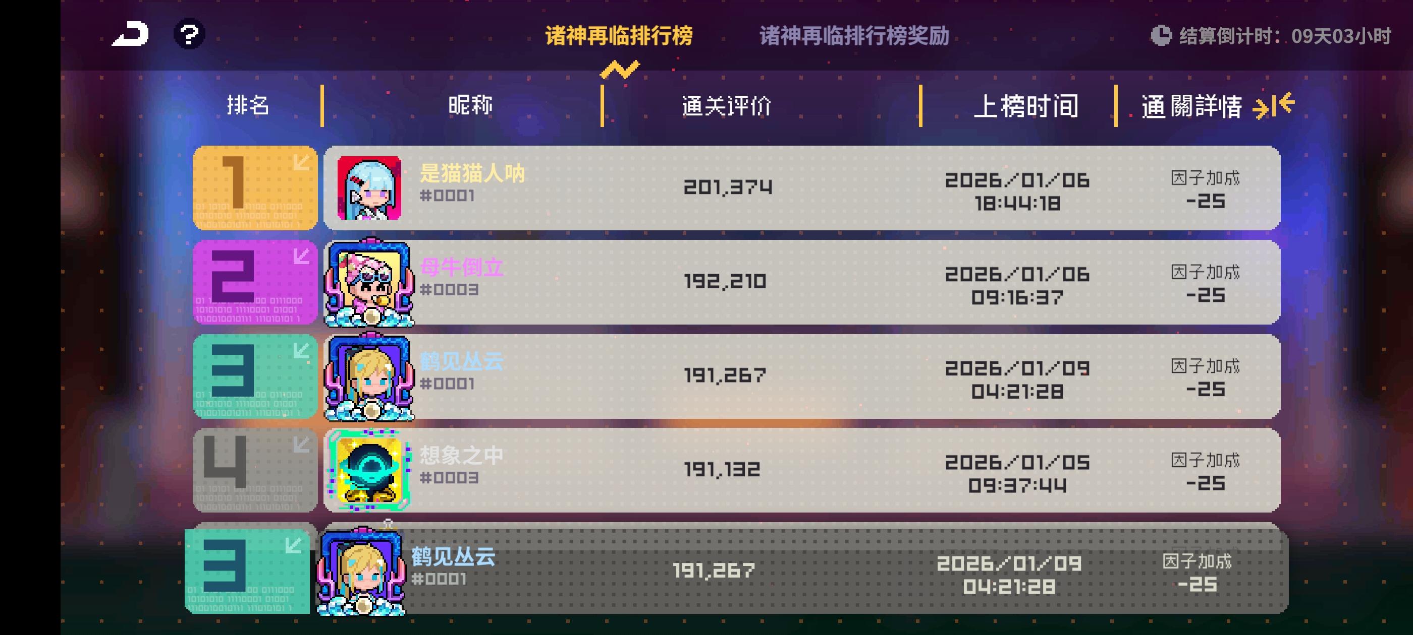 这次唯一遗憾是炼虚榜没能拿下(第九名),毕竟第一次玩【环月深空】,目前也算相当圆满了!#霓虹深渊无限