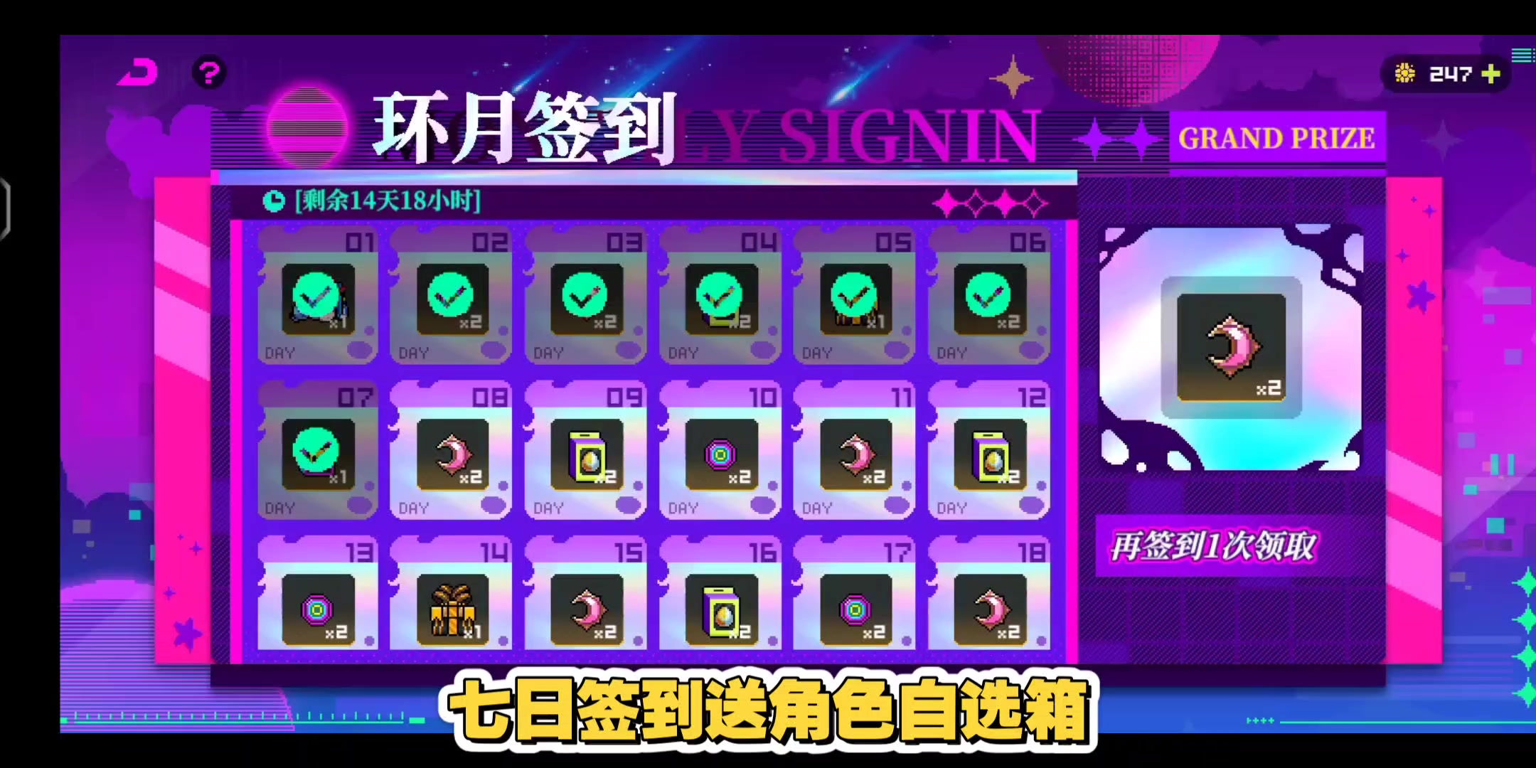 周年庆七日签到,送角色自选箱