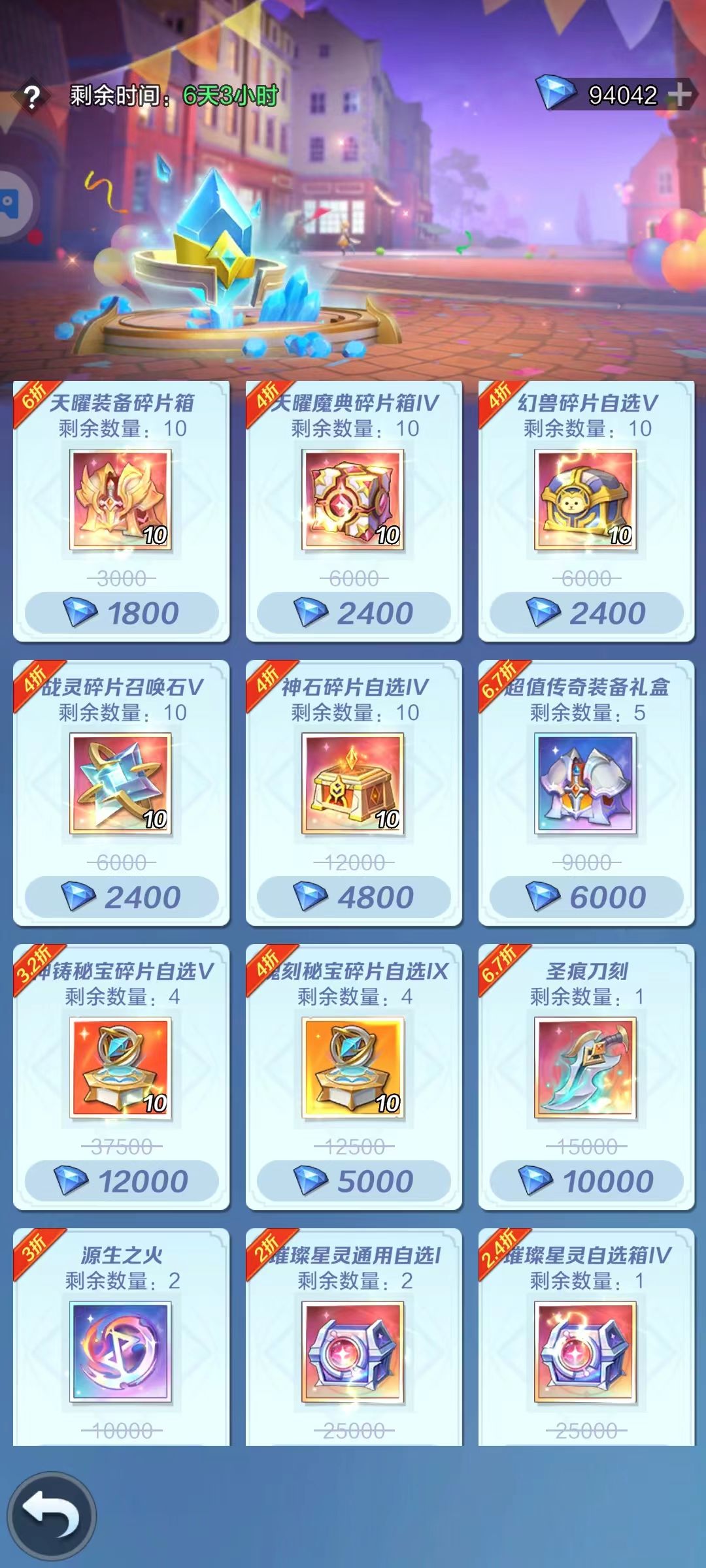 双十一大促来了,之前的一些硬件全都拿出来了。而且最关键是的可以直接买满合成一个硬件,不像之前只能买50、80片这种。这期更偏向白嫖和微氪(主要需要氪金的活动最近都没啥大变化、没法愉快的水攻略骗钻石了,,,)有需要氪金版本的,可以搜一下熊猫之前做的攻略,观星也好,奇物魔盒也好。但是奇物魔盒有些变动,第五层大奖需要2000积分,小伙伴们注意下。 大促里面,新老区最需要的战灵宝箱。目前硬件里面最值得升