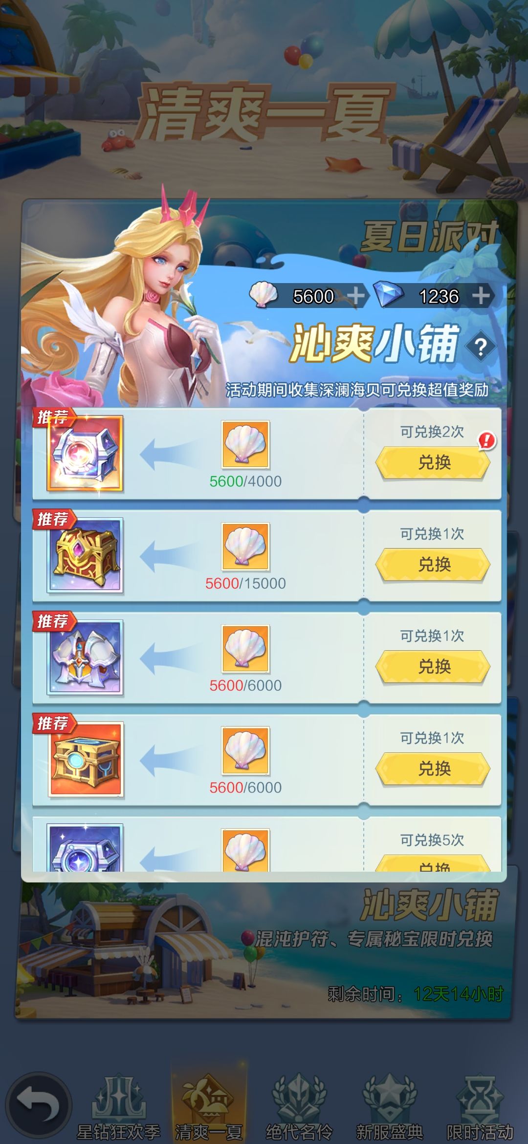 首先跟大家道个歉,由于我没有在第一天开始就计算每天获得的深澜贝壳能够获得的数量做一个预期,所以本指南所包含内容建议在活动最后一天的时候按照你获得的贝壳数量选择兑换! 如有大佬记录和计算出来获得总数的信息,请在下方留言更正,楼主叩谢啊!!!! 以后的活动我一定好好统计,全面一些! 首先上个图 先分析一下各个兑换选项的性价比 璀璨星灵自选:推荐!非常合适价值10000钻,抽星界轮盘,2万钻石你也不一定