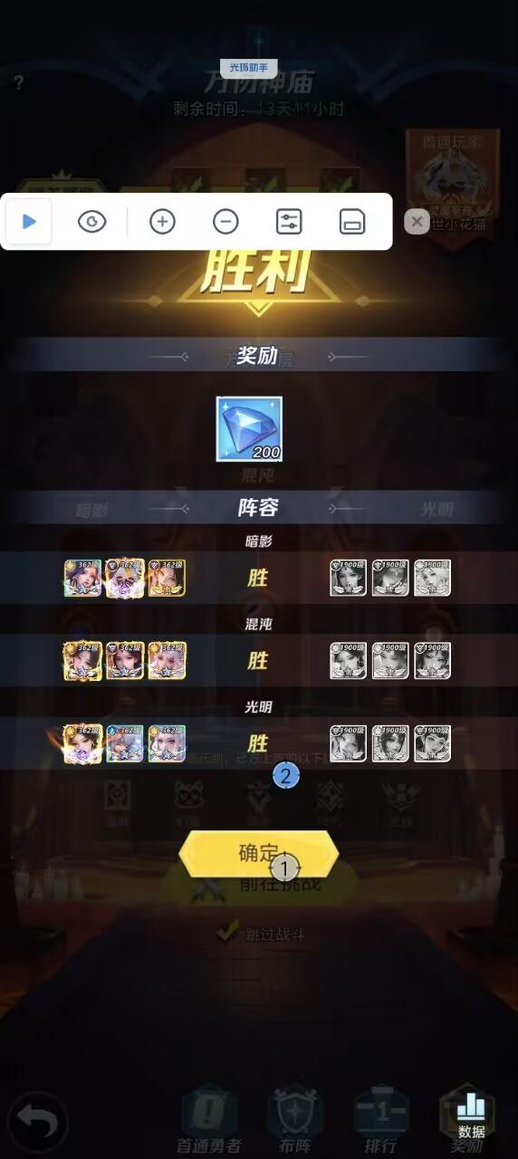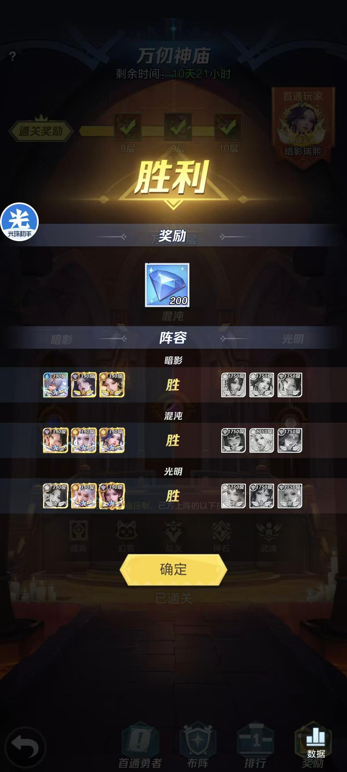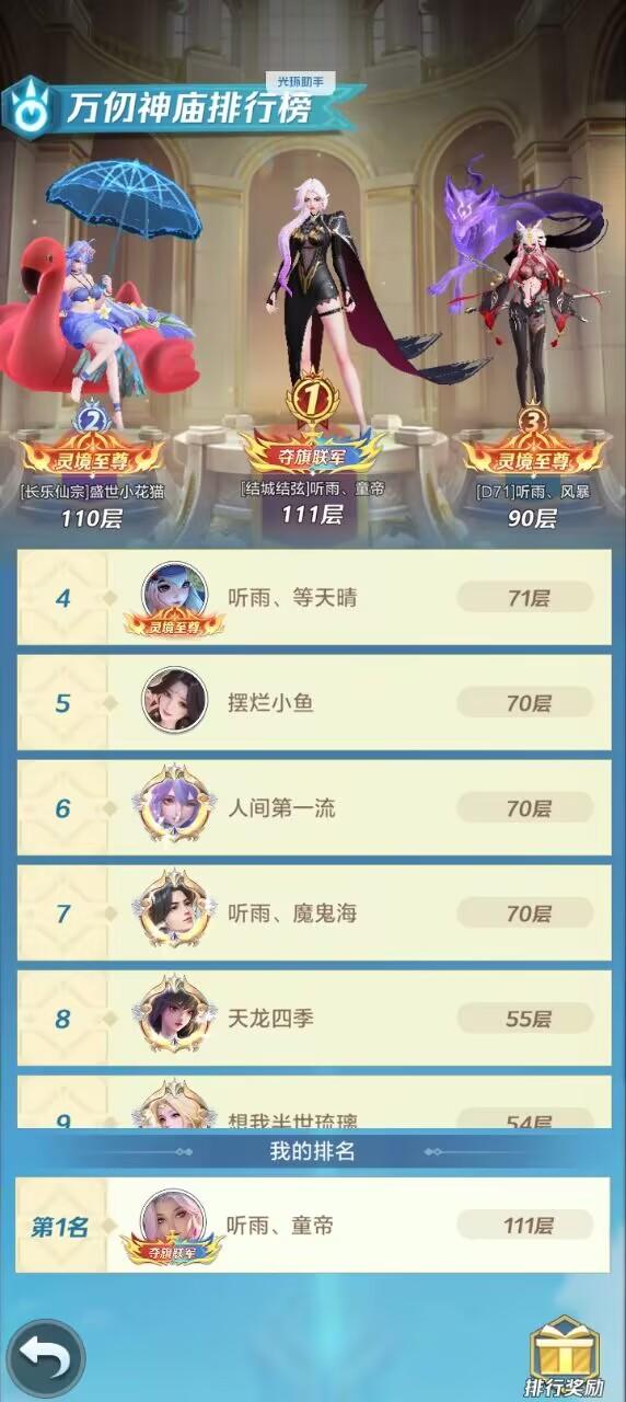 废话不多说,直接说重点:1.女帝一阶神兵,玉环一阶神兵刚需(在神兵铸获取,直接让我1.3亿从40几层直接突破到70)2.鸟人十一星(从白板拉到十一星直接让我突破71)3.貂蝉神兵三阶(直接让我突破90层)主要阵容:1.鲨鱼(女帝神兵)+玄女(十一神五专属三阶神兵)2.莫邪(十一神五专属三阶神兵)+洛神(十一神五)3.貂蝉(十一神五专属三阶神兵)+龙母(十一神五)4.鸟人十一星(十一