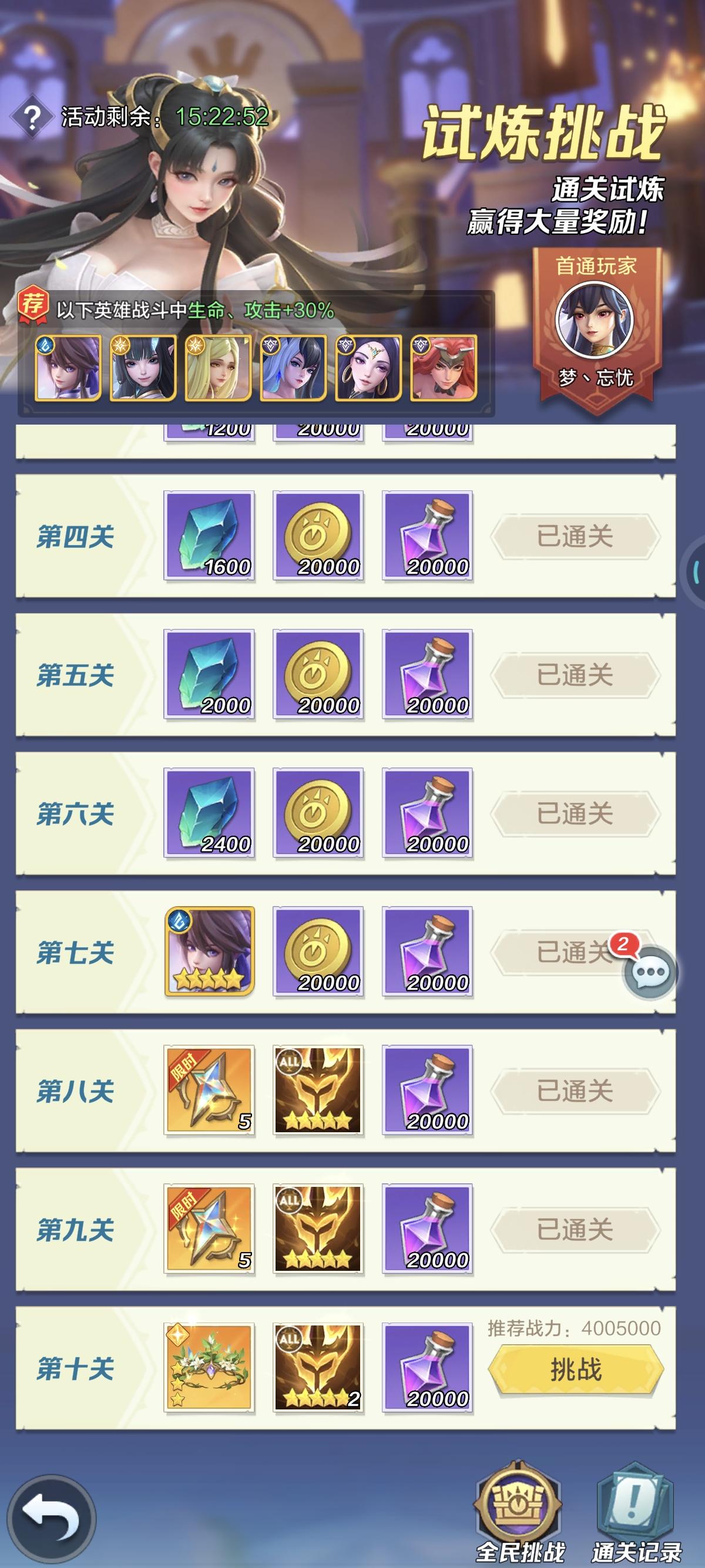 目前开服第七天,感觉区内压力好大……累充648(实际除以三)但是本服排行才第十,后续的规划是这样的1.第七天新出了一个无双池子,打算抽那个十三娘(练度八星左右)目前已经出了本体,后续打算再抽一只,但是好像不是很新,会不会没什么用2.后面的阵容薇娅应该可以升11星打算继续用着,明天凌霄可以升10星,后续黑骑士升10星(目前还缺一只本体),然后8星十三娘+八星圣女后续阵容怎么发展呢