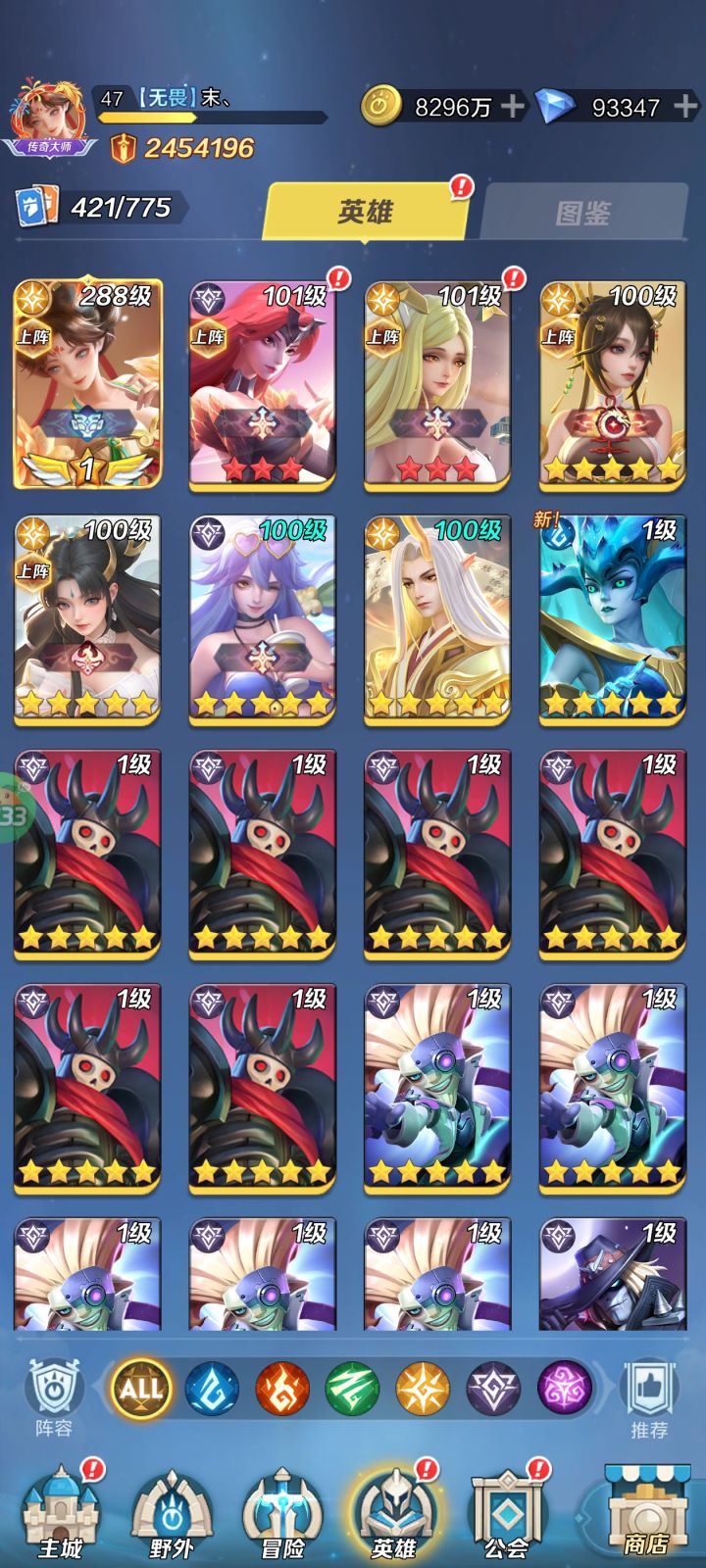 裂缝直接第一,pve有点东西,还有140多个工会箱就出了2400钻石太黑了,最后就是涨了差不多1900w战力.